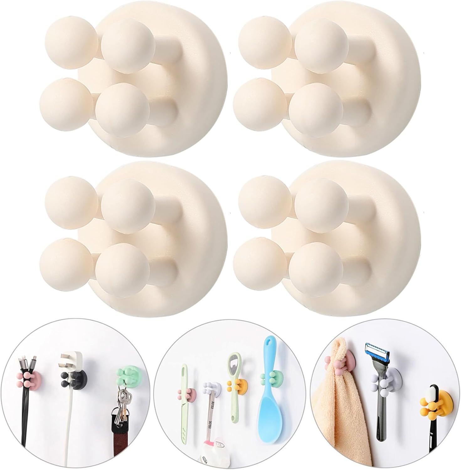 iBetterLife Tooth Brush Holder for Bathroom - 4Pcs Silicone Toothbrush Razor Holder for Shower Wall Mounted Self Adhesive Cute Storage Hook for Kids Hanging Loofah Towel for Kitchen Living Room Office