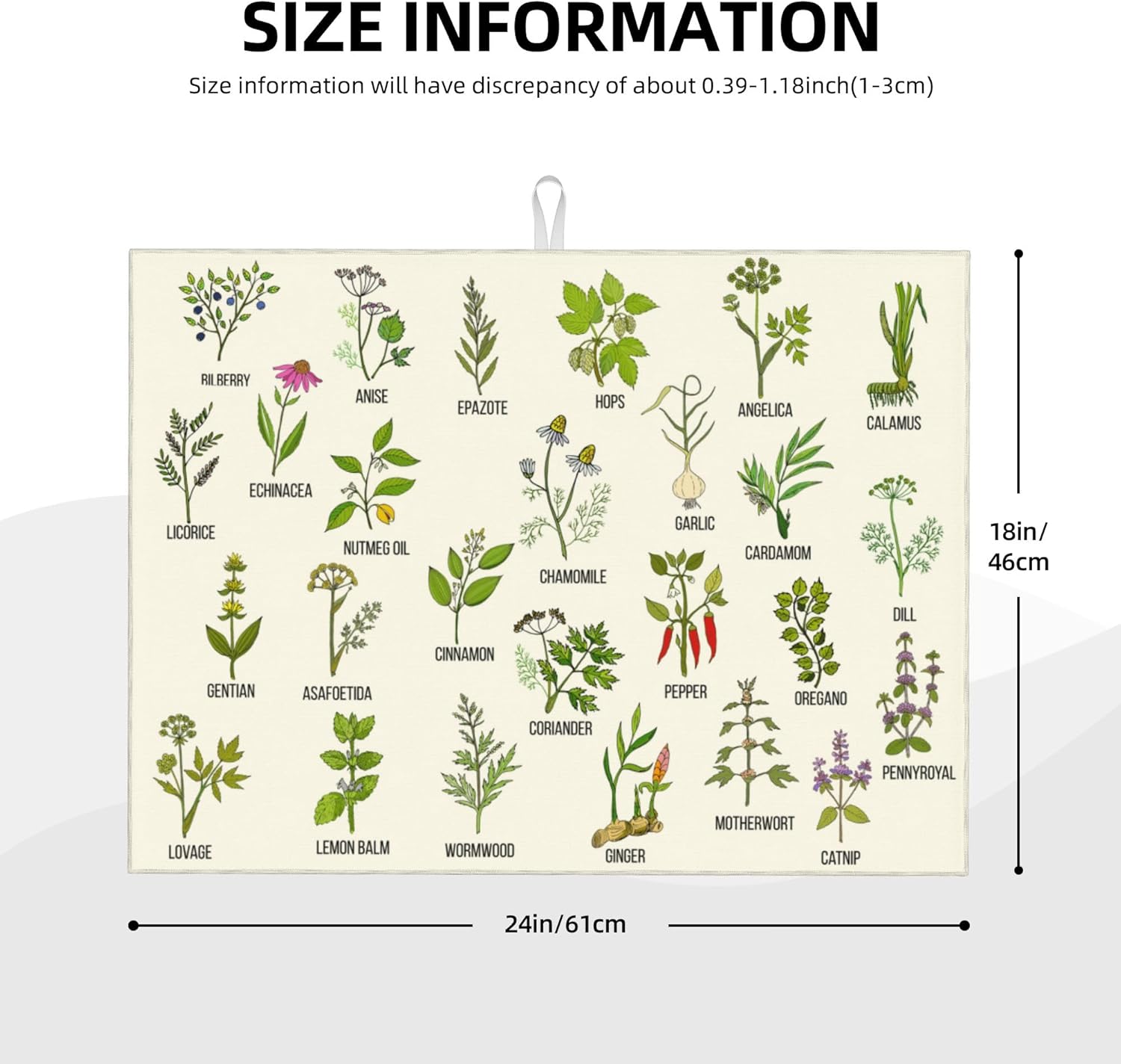 Cute Herbs Botanic Garden Plants Dish Drying Mat for Kitchen Counter Modern Drying Pad 18x24 Inch Absorbent Reversible Dish Drainer Rack Mats