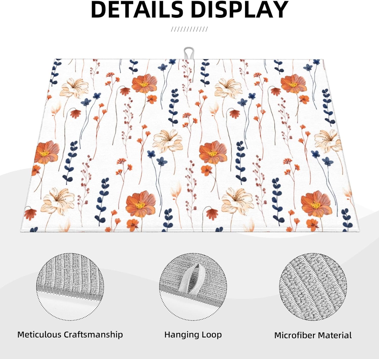 Orange Flower Decorative Dish Drying Mat for Kitchen Counter Watercolor Orange Floral Drying Pad 18x24 Inch Modern Absorbent Reversible Dish Drainer Rack Mats