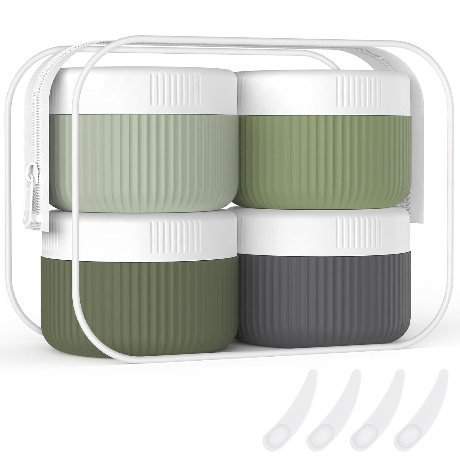ME.FAN Travel Containers for Toiletries, TSA Approved 1.5 oz Silicone Cream Jars, Leak-proof Journey Containers, Trip Accessories with Lid for Cosmetic Face Hand 4 Pack White Lid - Desert Sage