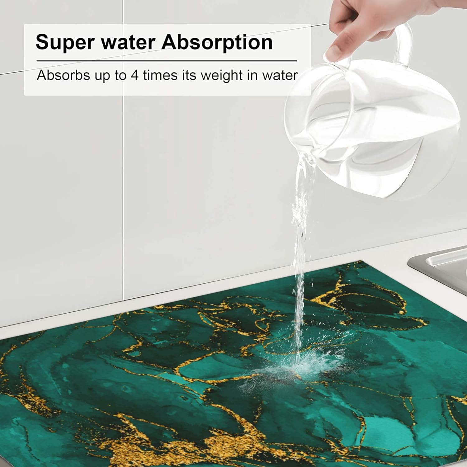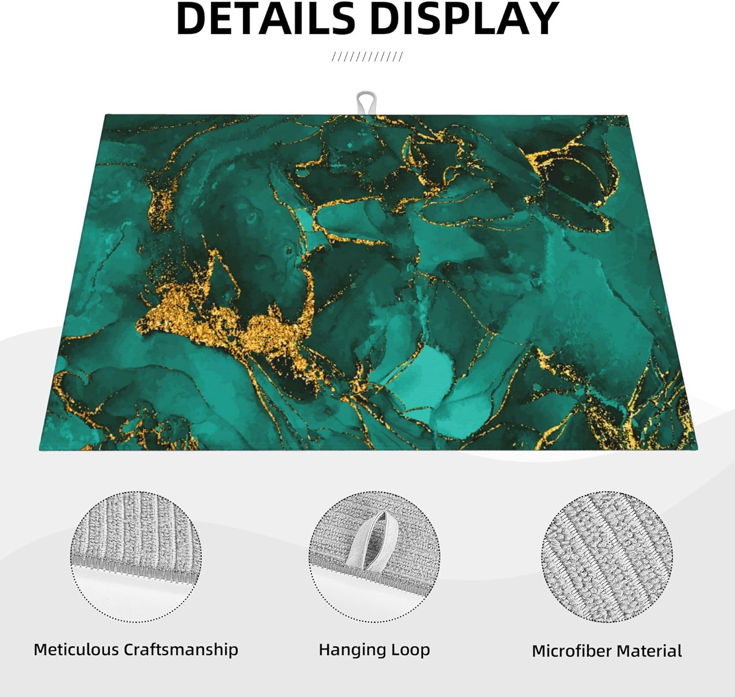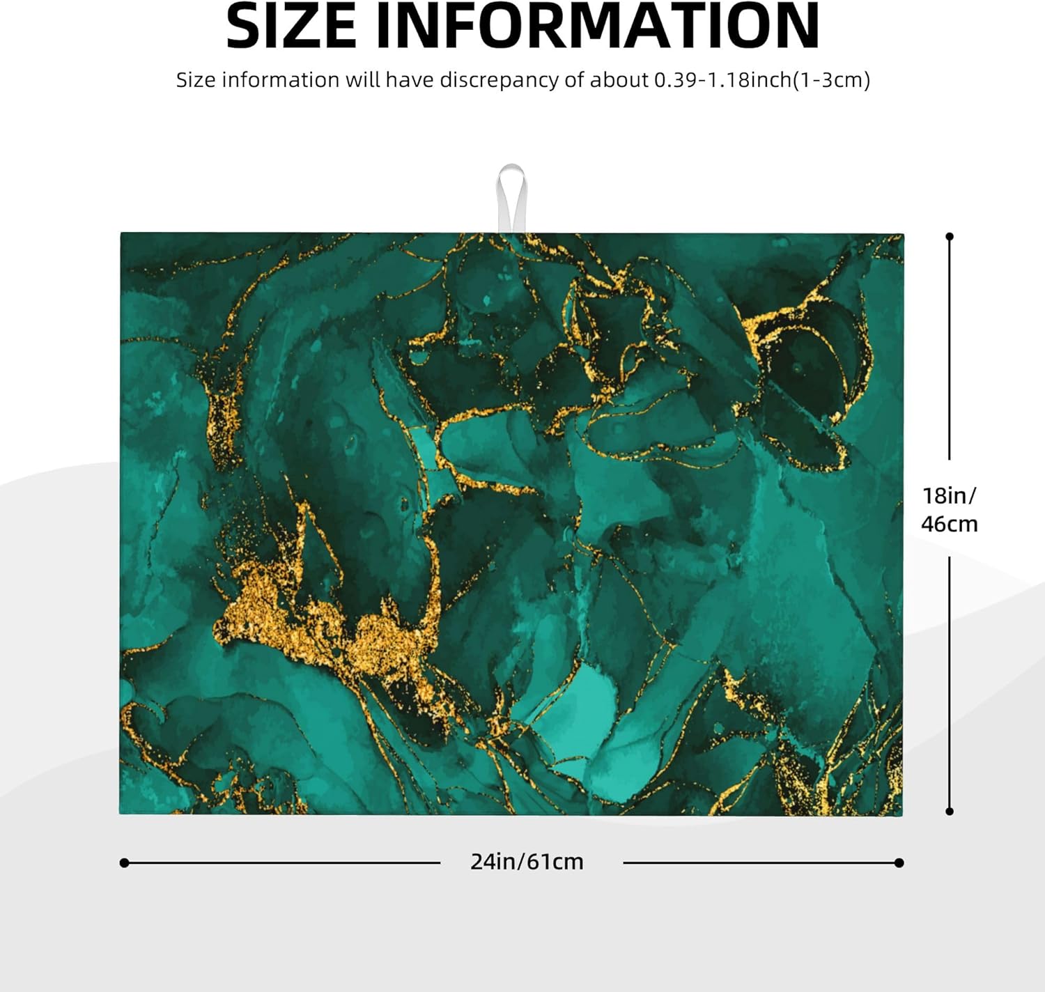 Turquoise Marble Decorative Dish Drying Mat for Kitchen Counter Emerald Dark Green Dishes Pad Dish Drainer Rack Mats 18"x24" Absorbent Washable Reusable