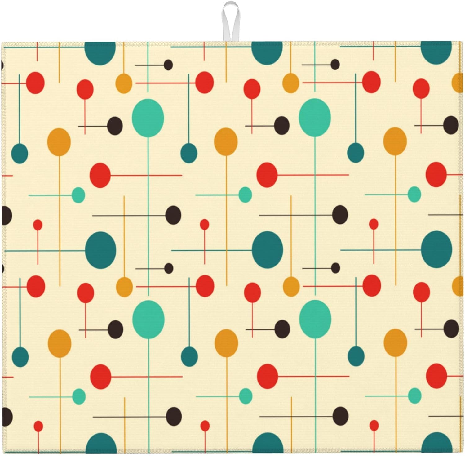 Mid Century Modern Atomic Retro Dish Drying Mat for Kitchen Counter Washable Drying Mat Absorbent Reversible Microfiber Yellow Drying Pad Kitchen Accessories 16"x18"