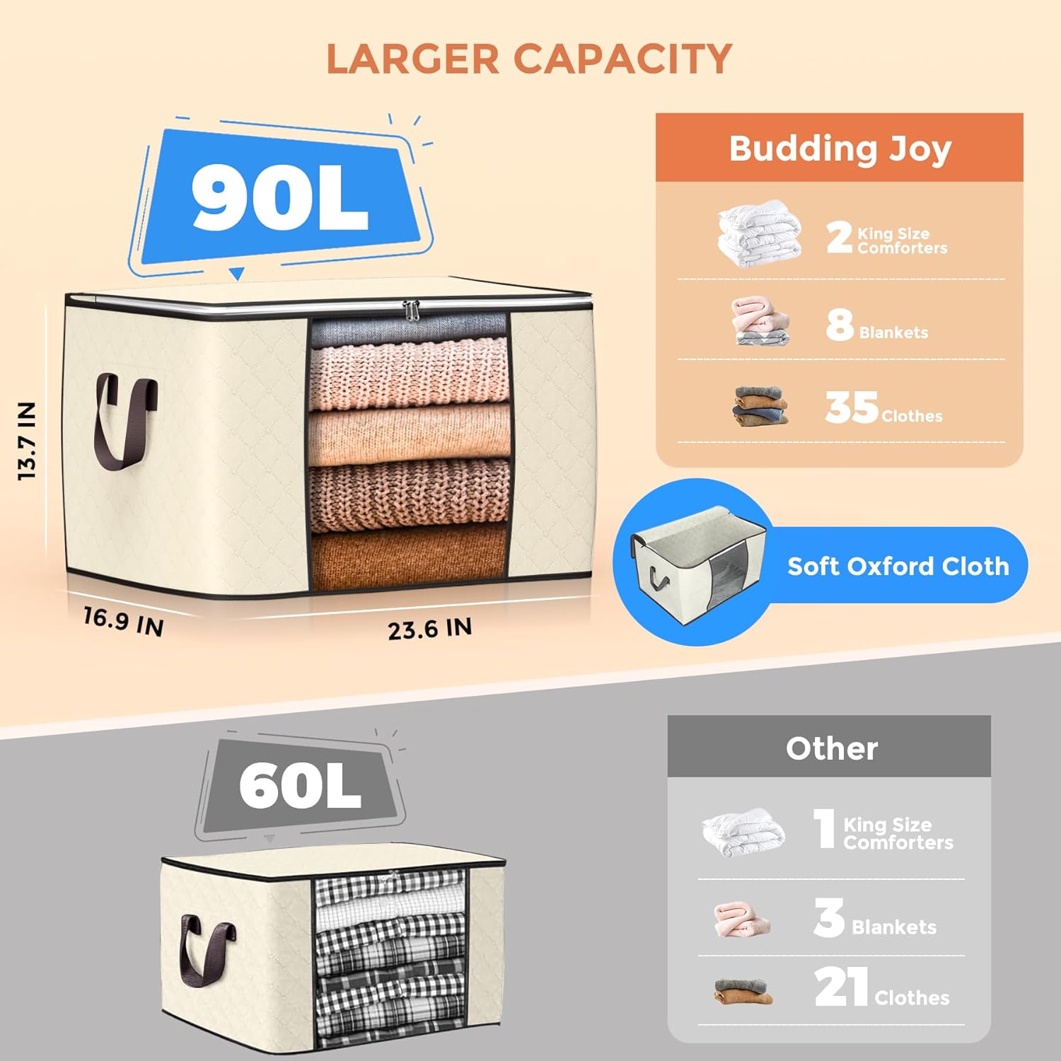 - Large Capacity: Each storage bag measures 23 x 16 x 13 inch (60 x 42 x 36 cm). The clothes organizer capacity is 90 L which is designed for travel essentials. It is spacious for your bed sheets, comforters, blankets, pillows,jackets or other clothes