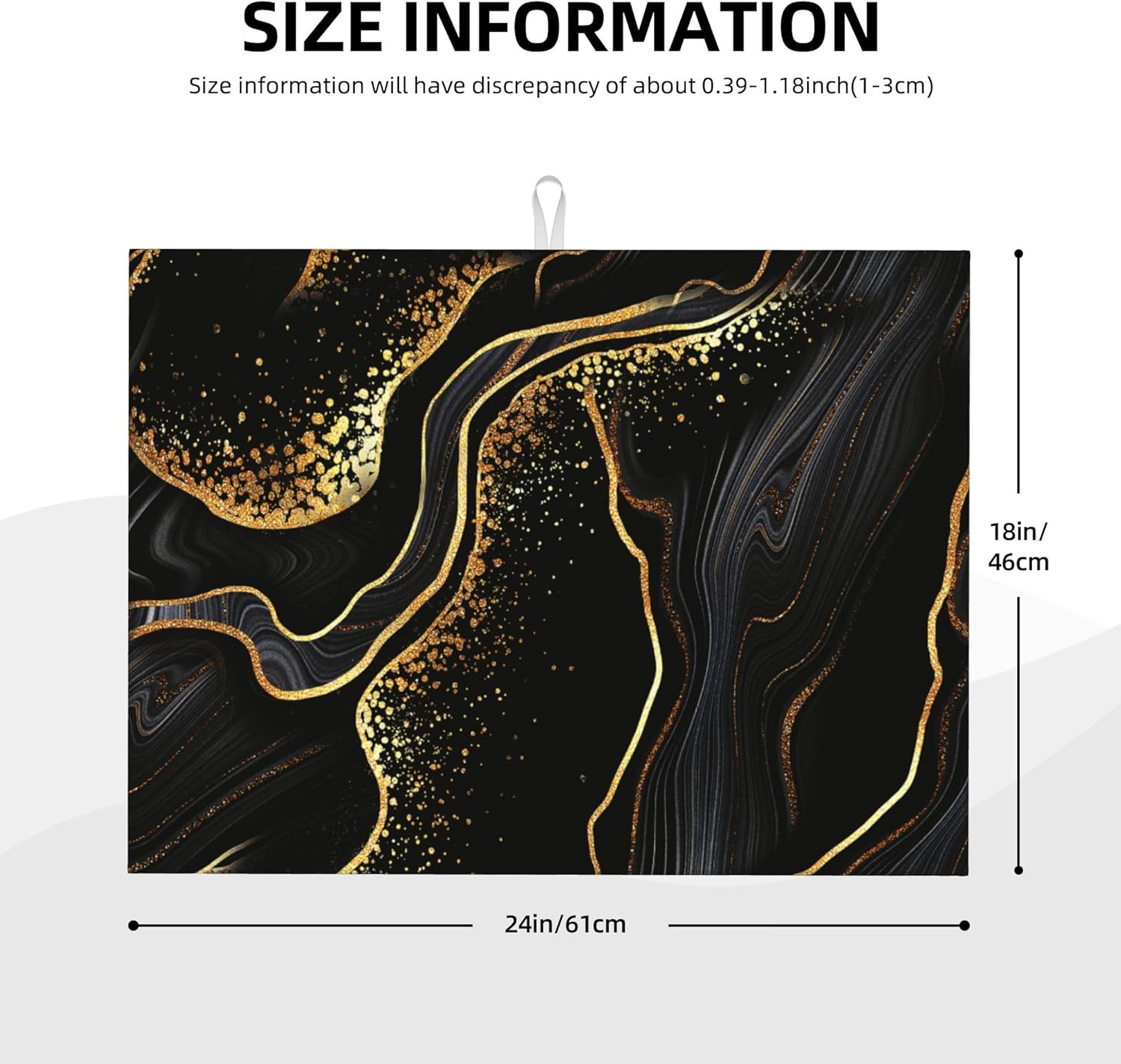 Black Gold Kitchen Drying Mat Marble Texture Dish Drainer Mat for Kitchen Counter 18x24 Inch Microfiber Absorbent Reusable Washable Modern Drying Pad Black Gold Coffee Bar Decor