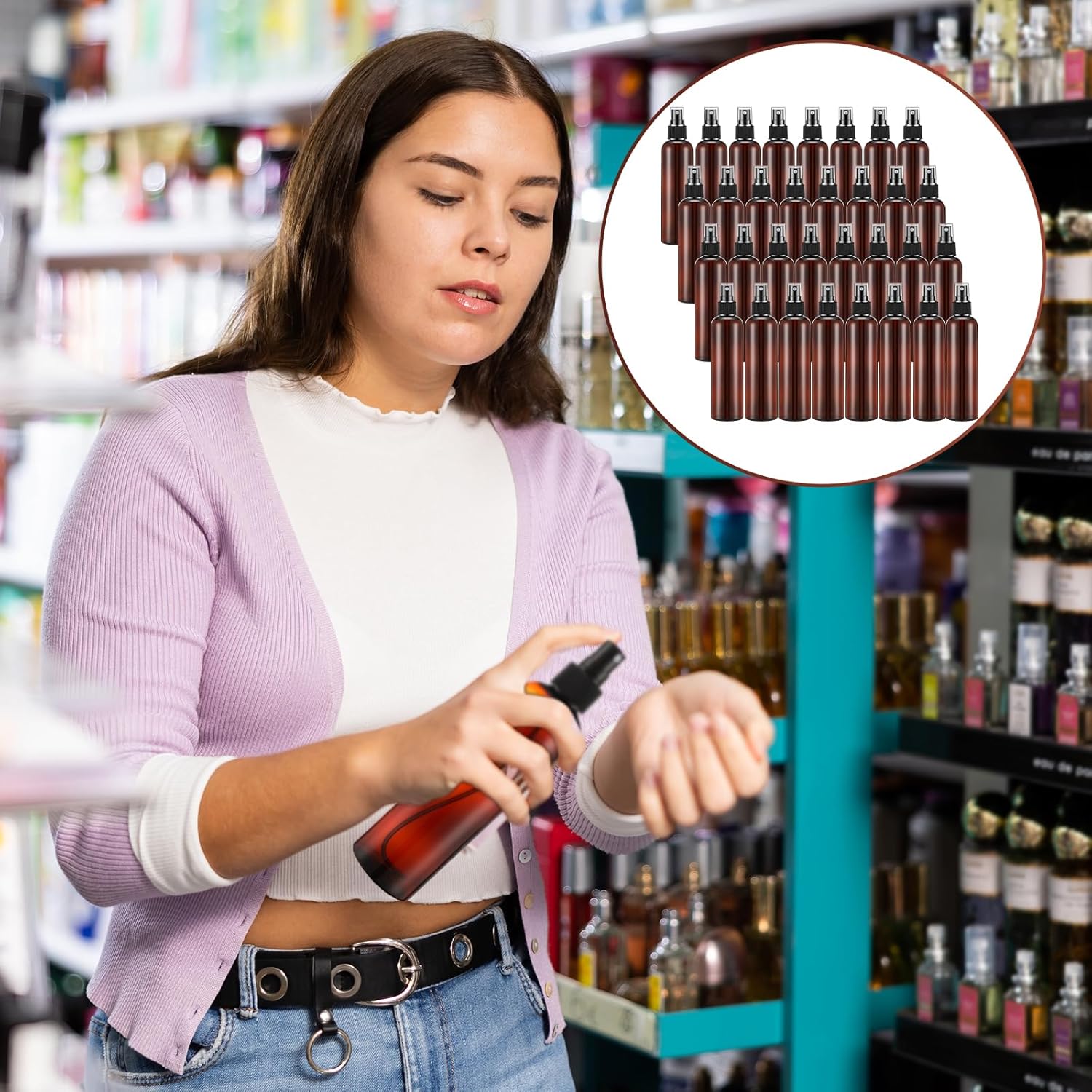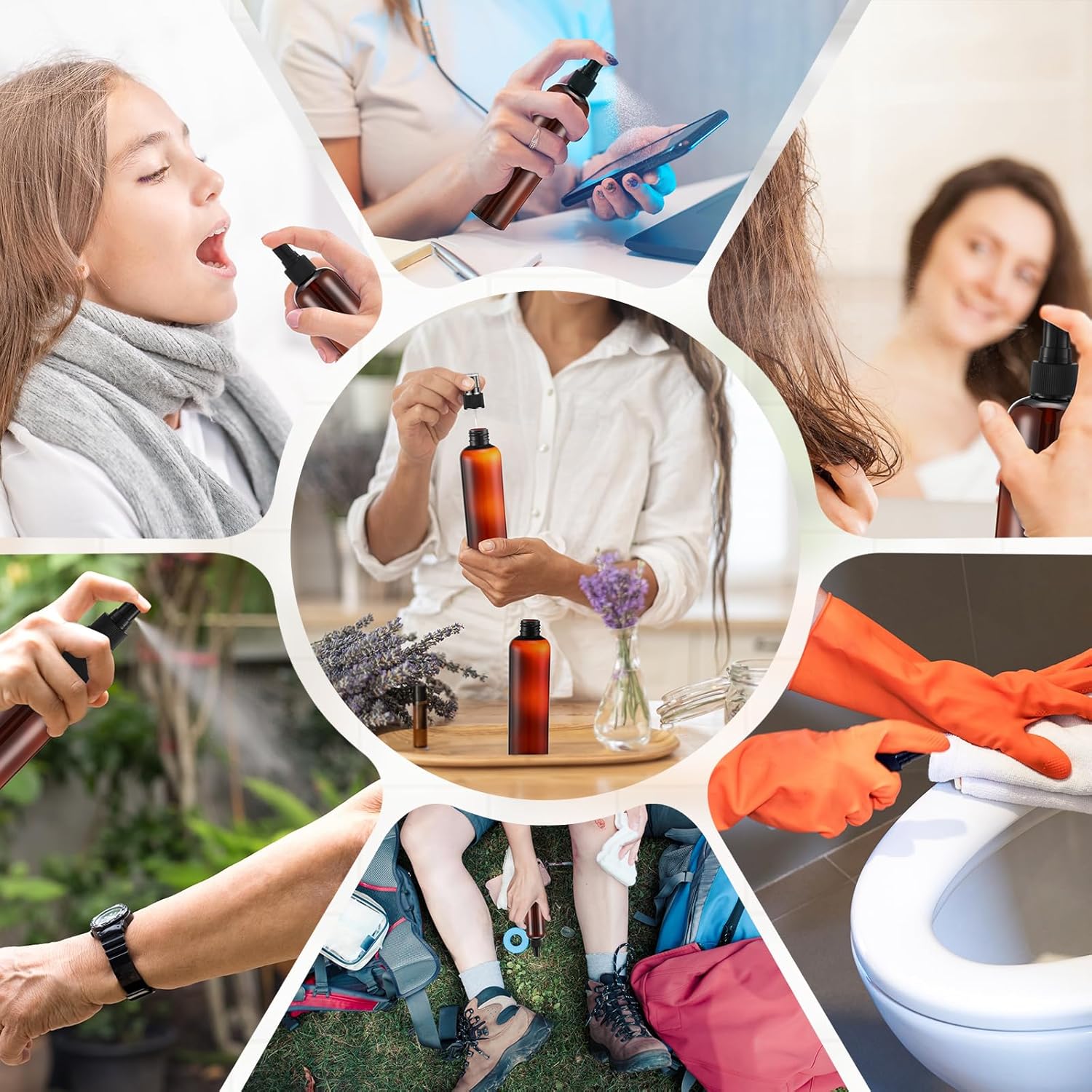 Eccliy 32 Pcs 8 oz Spray Bottles Fine Mist Cleaning Bottles Clear Empty Plastic Travel Sprayer Refillable Sprayer with Cap for Cleaning Solutions Oils Travel Perfumes(Amber,Clear)