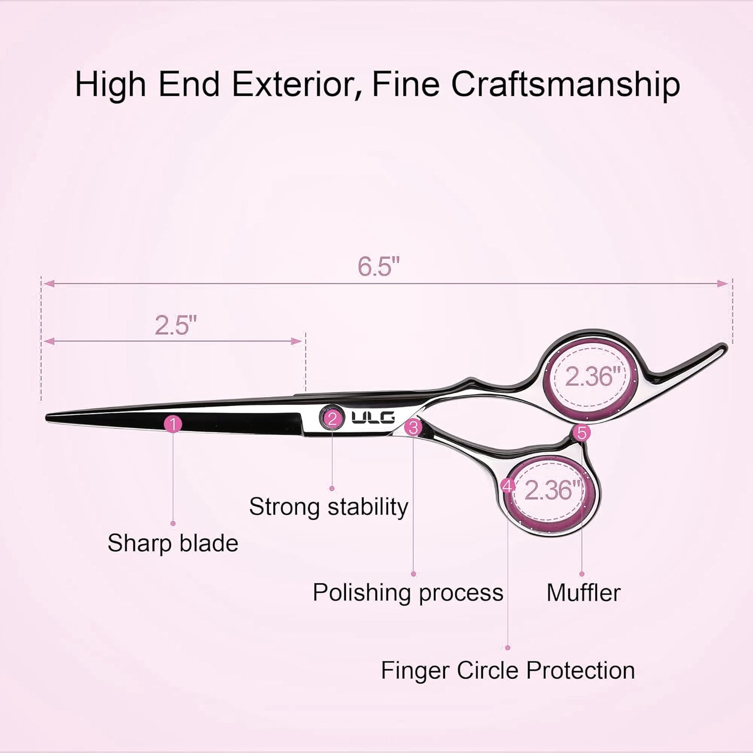Hair Cutting Scissors Thinning Shears Kit ULG Professional Hairdressing Texturizing Salon Razor Edge Scissor Japanese Stainless Steel 6.5 inch Pink