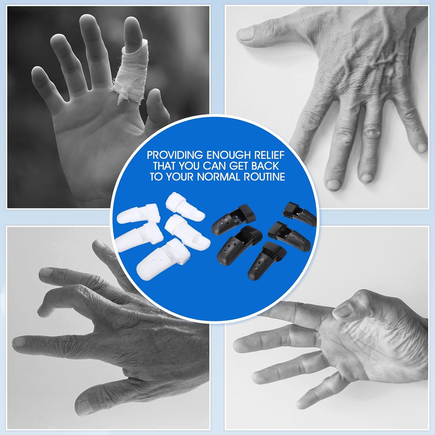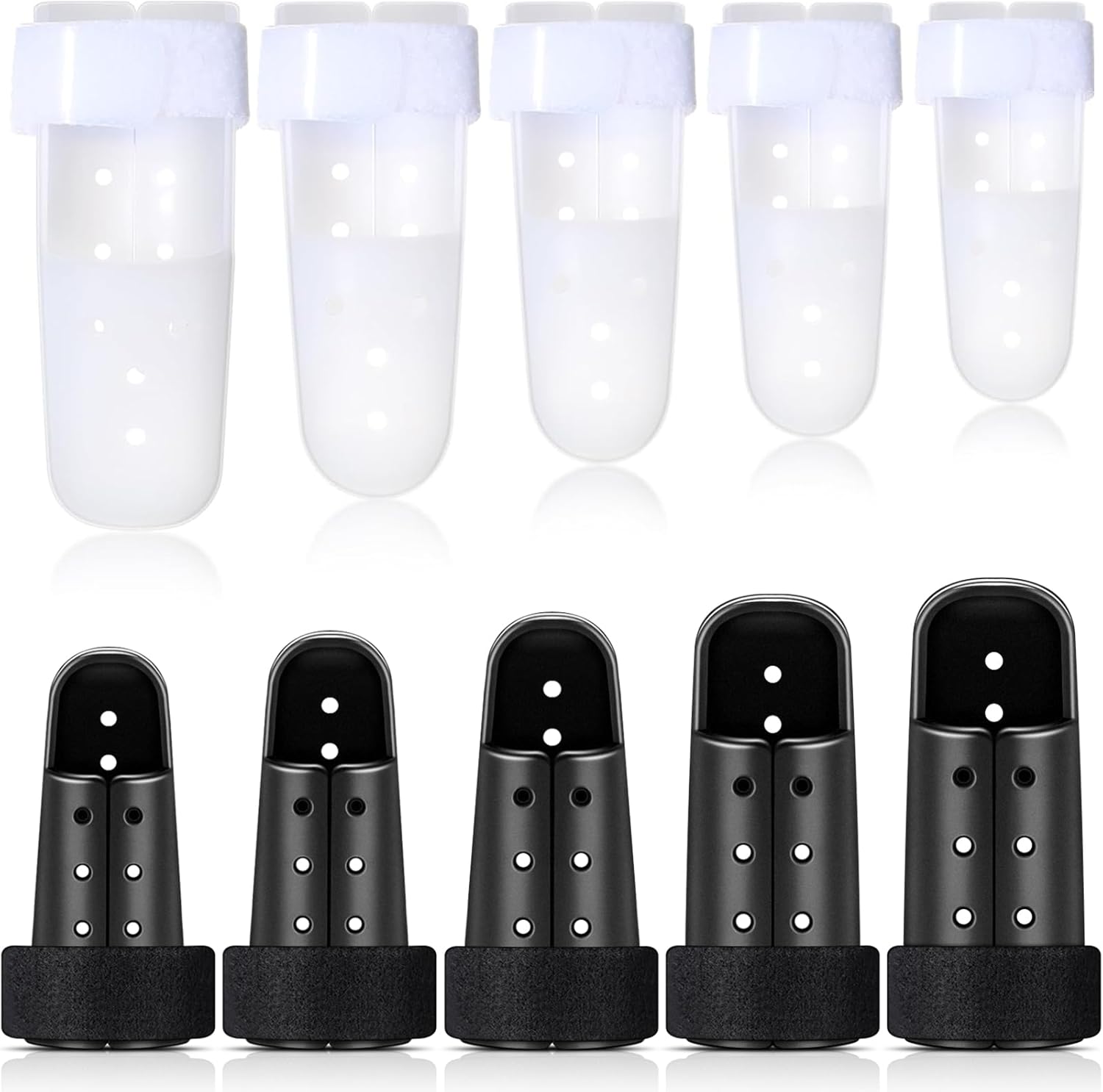 BBTO 10 Pcs Mallet Finger Splint, 5 Sizes Finger Support Brace Stabilizer Straightener Plastic Fingertip Protectors Arthritis Knuckle Immobilization for Thumb Pinky Middle Index Ring(White, Black)