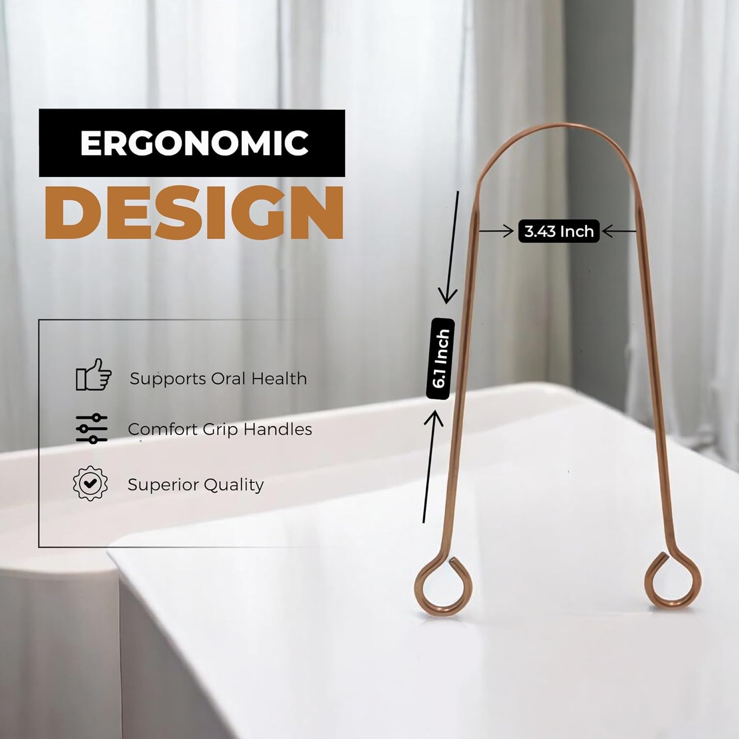 Tongue Scraper for Adults by HOKIN (Copper 2Pcs Oral Care Pack), Copper Tongue Cleaners Reduce Bad Breath, 100% Copper Tough Scrapers Men and Women Hygiene Product