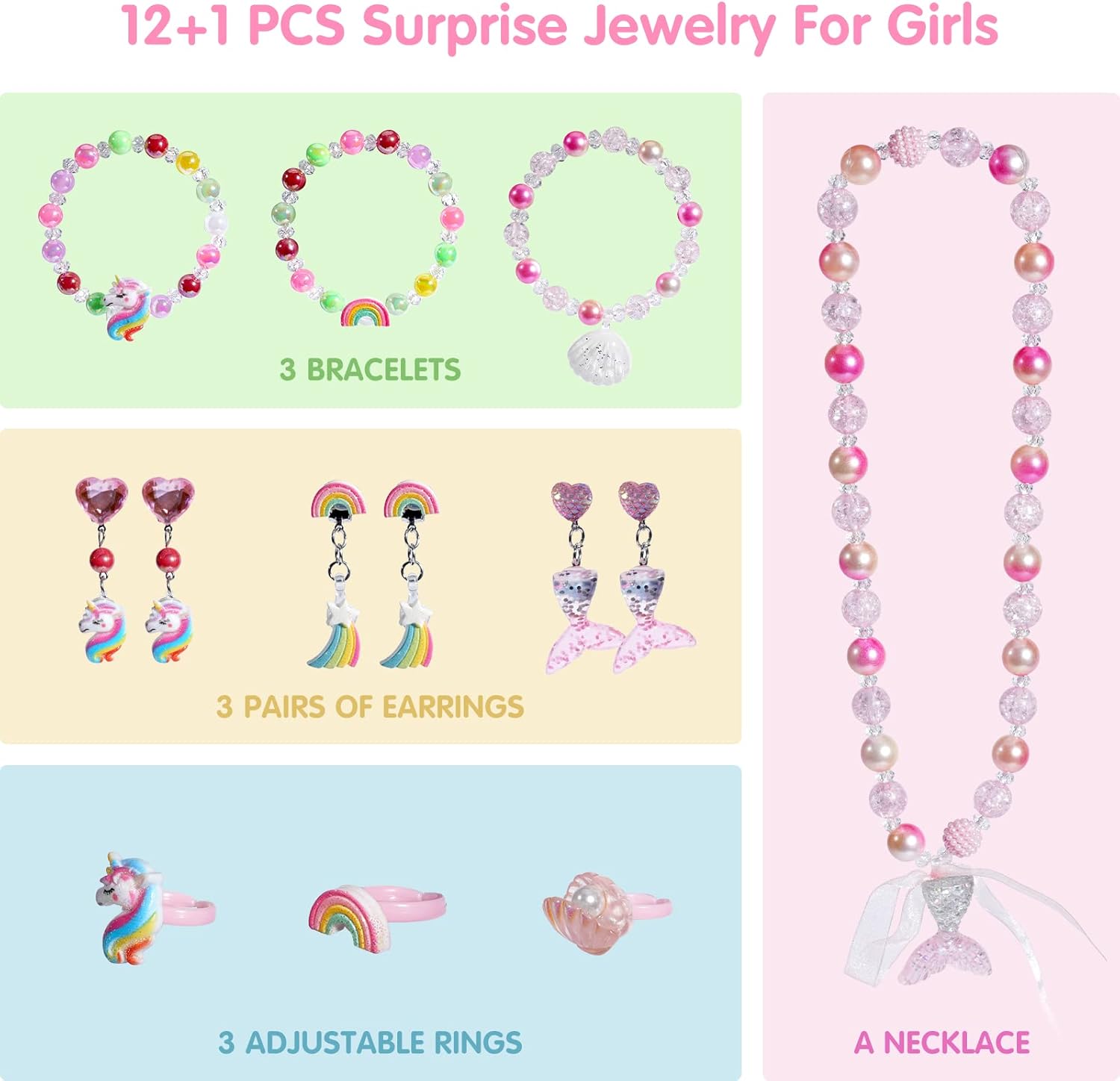 Kids Bath Bombs for Girls with Toys Inside, 12+1 Pack Unicorn Bath Bombs with Surprise Jewelry for Kids, Princess Girls BathBombs with Mermaid Necklace 3 4 Year Old Girl Birthday Easter Gifts