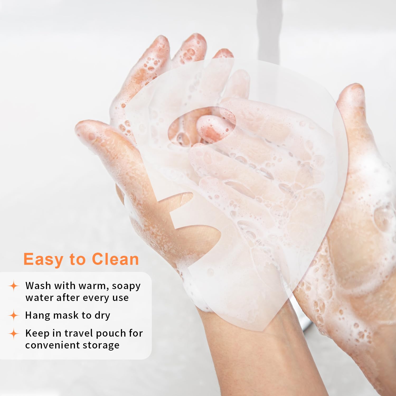 - Sheet Mask Topper and Locks in Moisture - The reusable face masks skincare is a game-changer for sheet mask enthusiasts, ensuring that your facial treatments stay in place without slipping or dripping, allowing you to multitask during your beauty routine. Reusable and designed for a snug fit, it prevents mess and movement. This innovative topper also locks in moisture when applied over your favorite anti-aging serum, acting as a barrier to prevent evaporation and promote deep penetration for enhanced effectiveness. The result is a well-hydrated, revitalized, and nourished complexion.