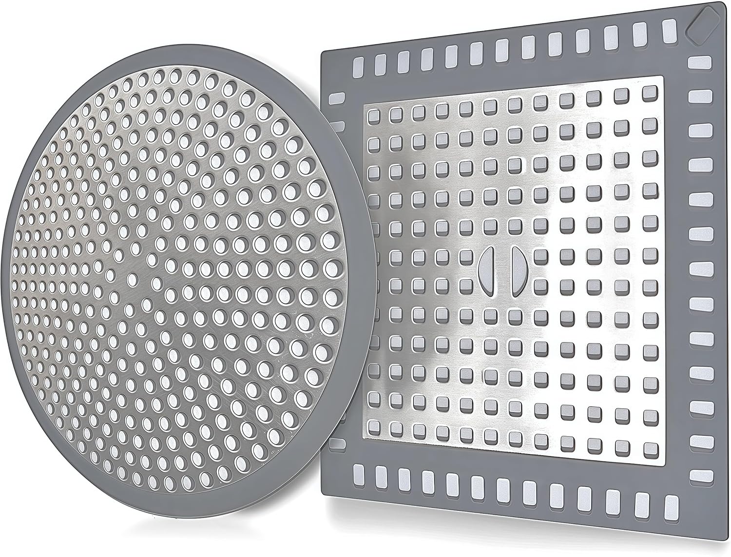 - Efficient Design: The perforated surface allows water to flow through smoothly while trapping hair and debris,This shower drain cover features a rust-resistant stainless steel core, surrounded by high-quality TPE rubber with smooth edges for Protect the feet and hands of family