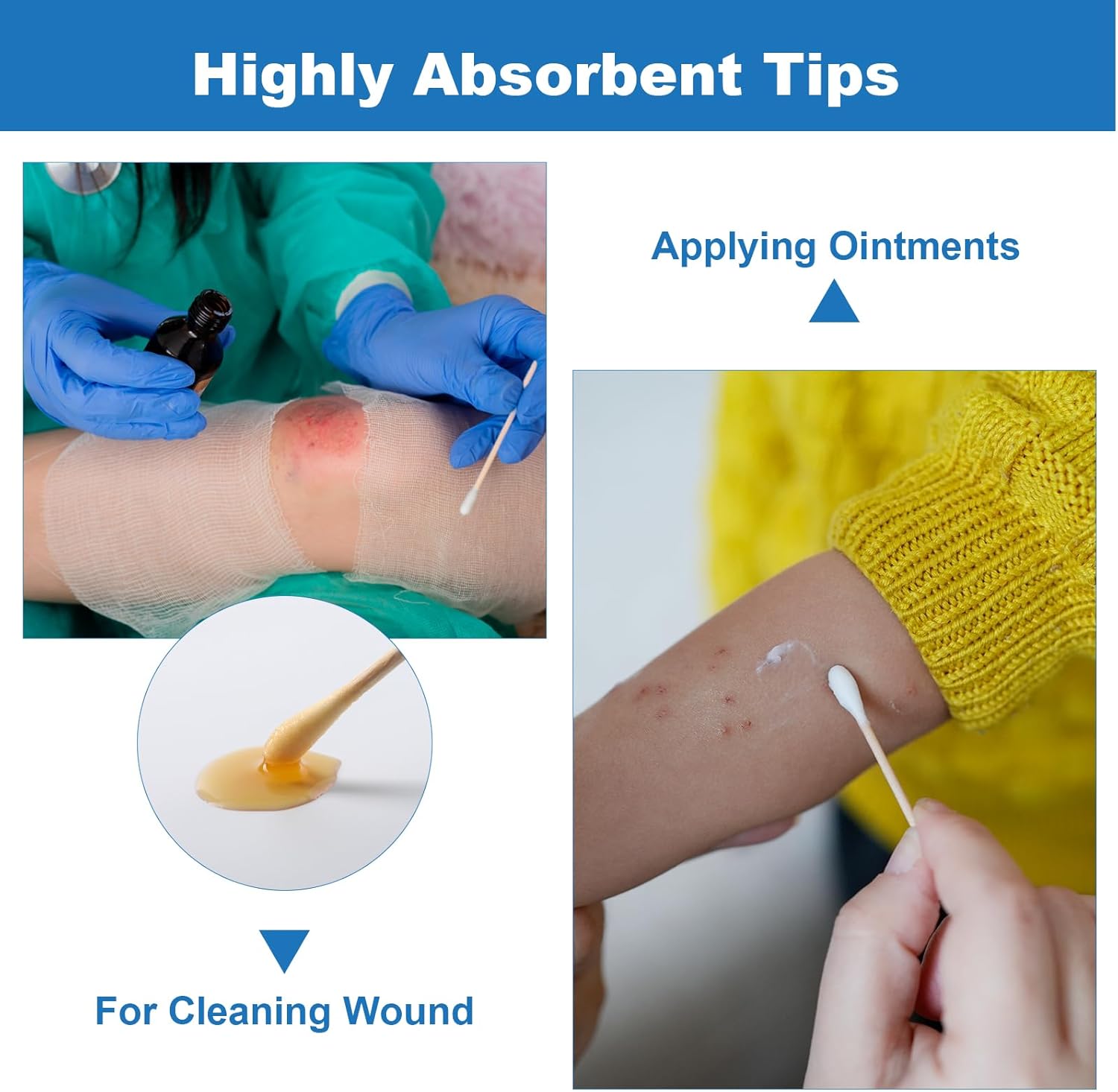 - Medical Grade Cotton Tips: Made of pure natural cotton, the cotton head are solid and firm, won't easily unreavel and fall off