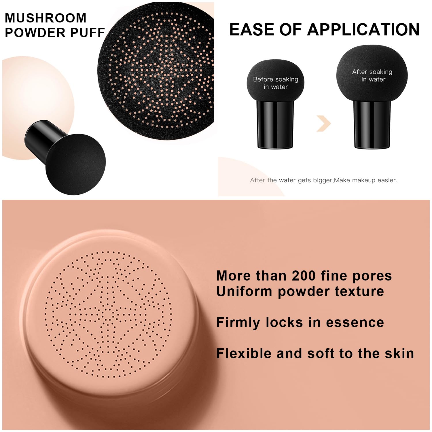 - 【Natural Makeup】Mushroom head cushion BB cream can naturally cover skin imperfections, fine lines, redness, dark circles and hidden pores, creating a beautiful, radiant and natural foundation makeup. Keep it moisturized, refreshing and breathable all day long.