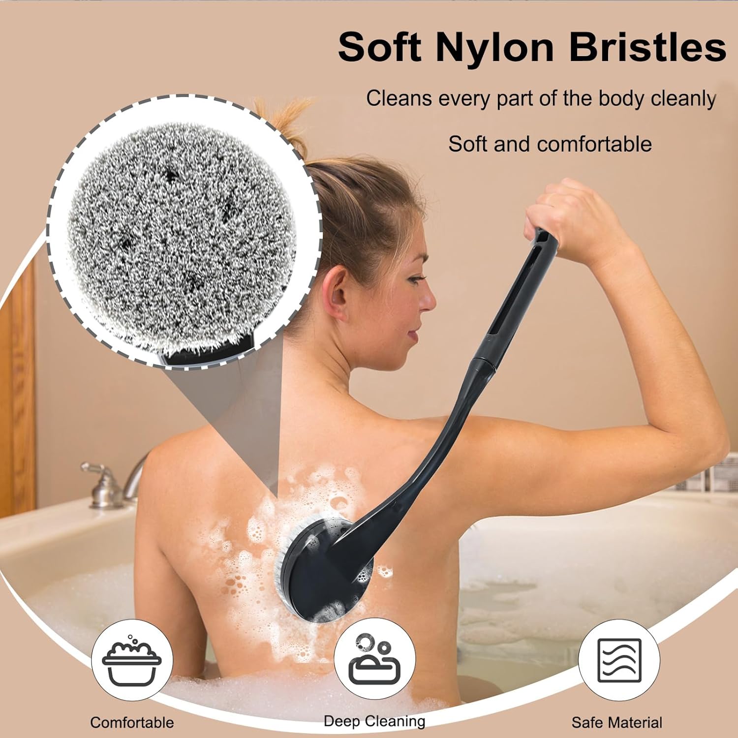 - Easy To Use:Bath brush long handle for shower adopts a threaded design, which can be easily grasped and is not easy to slip off.Back scrubber handle is detachable. After use,clean the shower brush with water and hanging it to dry