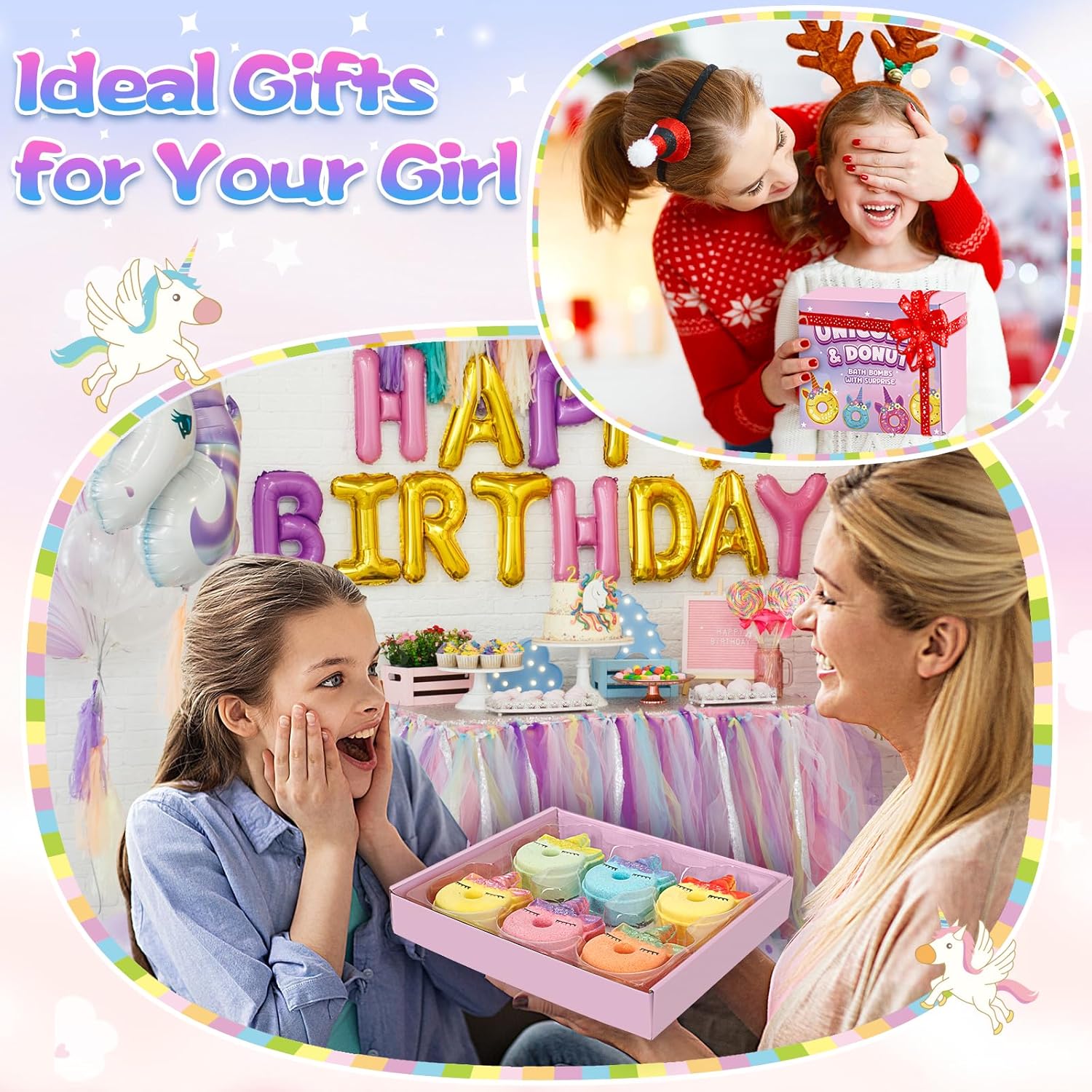 - Unicorn Gift Set for Girls: The adorable Unicorn Donut shape and beautifully packaged gift set make our bath bombs an ideal present for birthdays, Christmas, Easter, and unicorn-themed parties. Delight the special girl in your life with a unique and enjoyable bath gift.