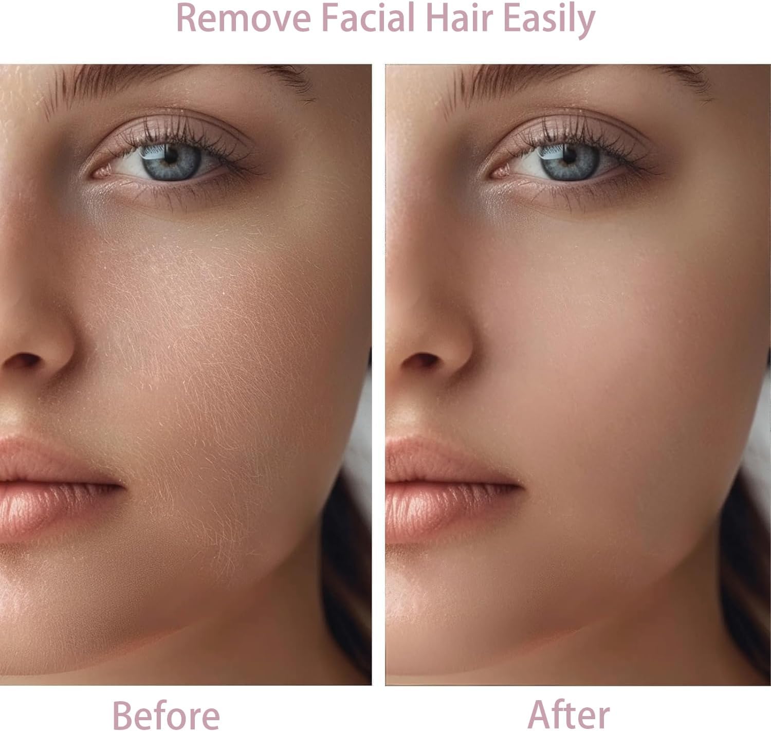 - Precise Hair Removal for All Facial Areas: Hair removal device for women with its precision micro-knife head, the device targets small, delicate facial areas like the upper lip, chin, and eyebrows, effectively removing even the finest hairs while keeping your skin smooth and hair-free.