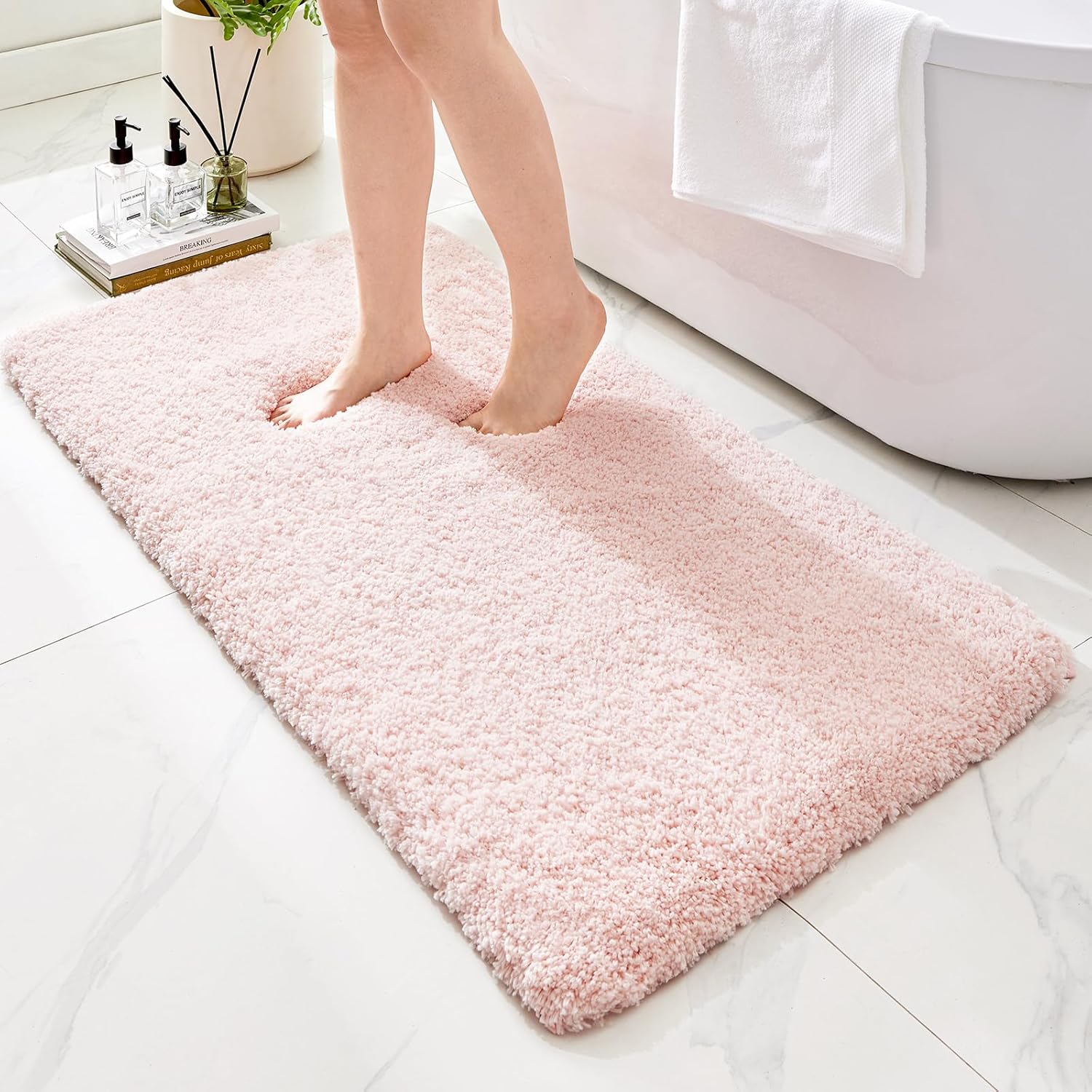 ILANGO Pink Bathroom Rugs 60" × 24" Non Slip & Super Absorbent Extra Thick Soft, Washable Bath Carpet Runner for Floor, Microfiber Plush Shaggy Bath Mats with Rubber for Bedroom Bathtub Shower Room