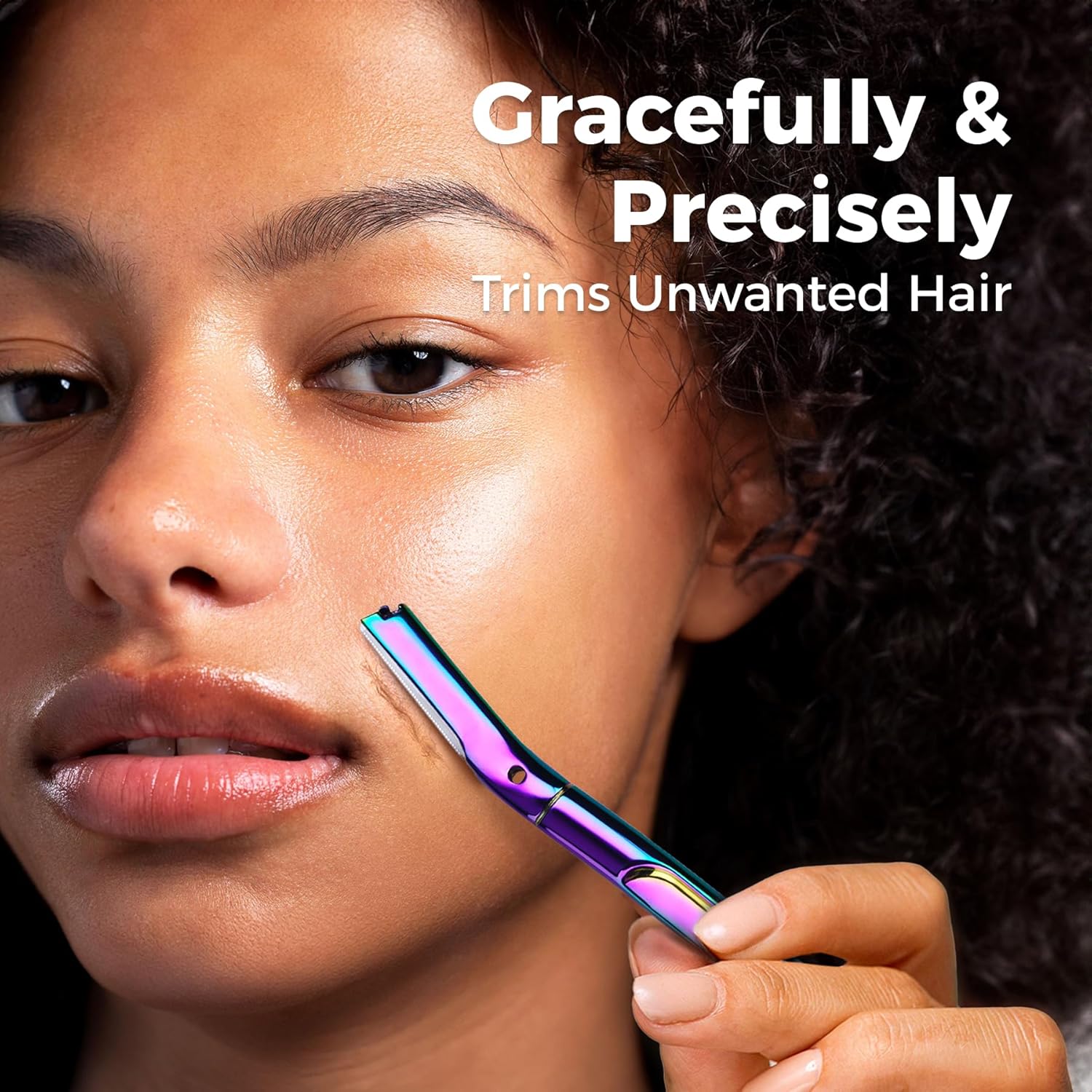- MULTI-FUNCTIONAL RAZOR: Beyond eyebrow shaping, this face razor can also deal with peach fuzz and facial hair removal as well as body hair, or even exfoliation for smoother skin, providing a multipurpose solution for all your needs. There are two kinds of blades included, micro blades and wide-exfoliating blades. Both for beginners and pros.