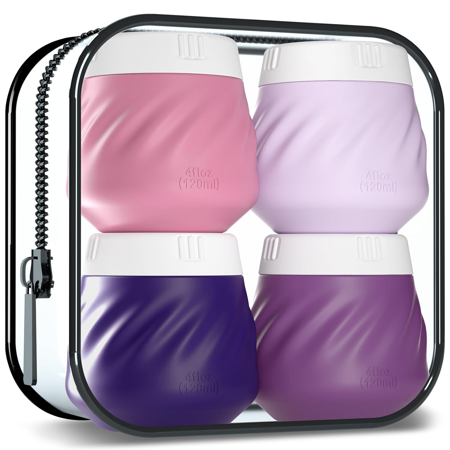 - Convenient Travel Kit: The compact size of the jars makes them easy to carry in pockets, handbags, and backpacks. 4-pack in different colors for easy identification of contents and keep your toiletries organized and accessible.