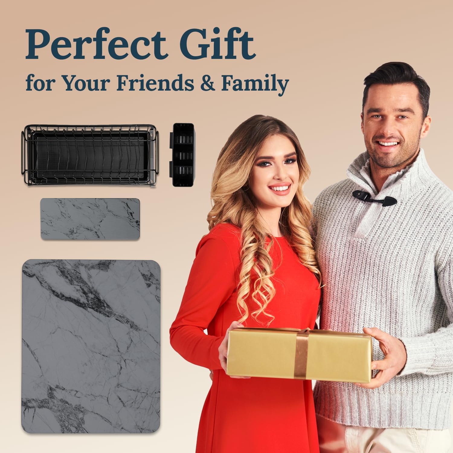 - ππππππ‘π§ & πππ¦π§πππ§ππ Transform your space with AquaTerra's stone drying mat for the kitchen counter and carbon steel rack. The sleek marble-like design offers a modern touch, elevating your countertop decor while ensuring ultimate functionality for busy kitchens.