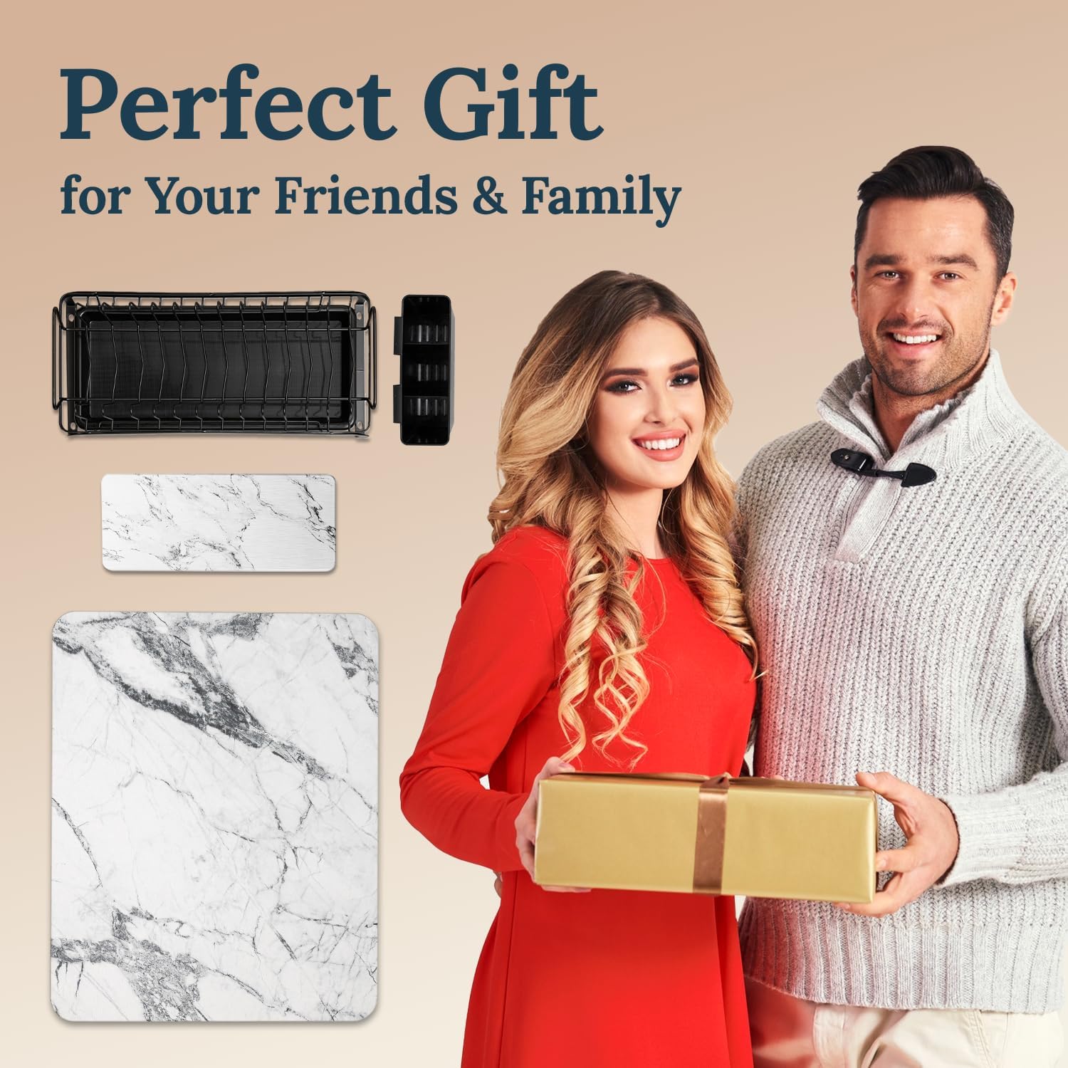 - ππππππ‘π§ & πππ¦π§πππ§ππ Transform your space with AquaTerra's stone drying mat for the kitchen counter and carbon steel rack. The sleek marble-like design offers a modern touch, elevating your countertop decor while ensuring ultimate functionality for busy kitchens.