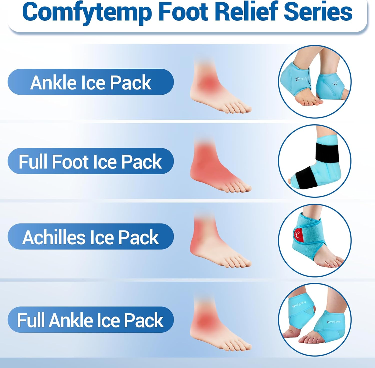 - Targeted Large Ankle Foot Pain Relief: This 30% more coverage Comfytemp large ankle ice pack wrap is contoured to fit the ankle and foot region perfectly, ensuring maximum effectiveness in relieving ankle pains caused by swelling, sprains, bruises, inflammation, and arthritis. These reusable ice packs for ankle injuries provide active pain alleviation for a range of conditions, including plantar fasciitis, achilles tendonitis, gout pain, heel spur, sprained ankles, postoperative recovery, etc.