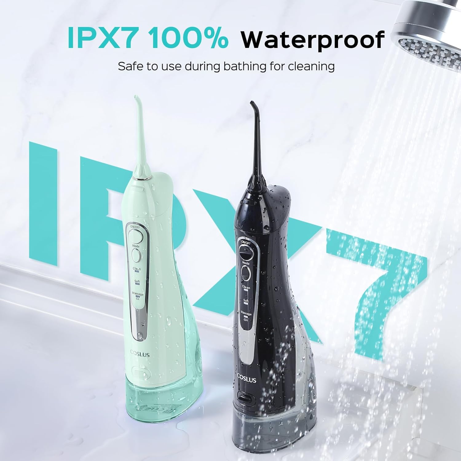 - IPX7 waterproof and more durable: COSLUS water dental flosser 2-pack is built to last with IPX7 waterproof protection, allowing you to enjoy an oral SPA even in the shower. The upgraded motor ensures 3 years of reliable performance, making it a durable choice for oral health-conscious users and eco-friendly consumers. Whether you're caring for implants, dentures, or orthodontic braces, COSLUS delivers consistent, high-performance cleaning
