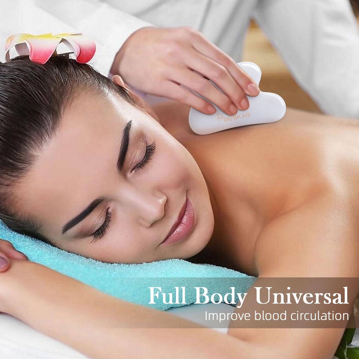 - Ergonomic Designed: The curving shaped design and fit the face perfectly. The pointed design be used to small acupoints on the body. It's not only designed for face, but also be used on areas of the body such as the back, forearms, calves. Enjoy the pleasure of gua sha in anytime, anywhere
