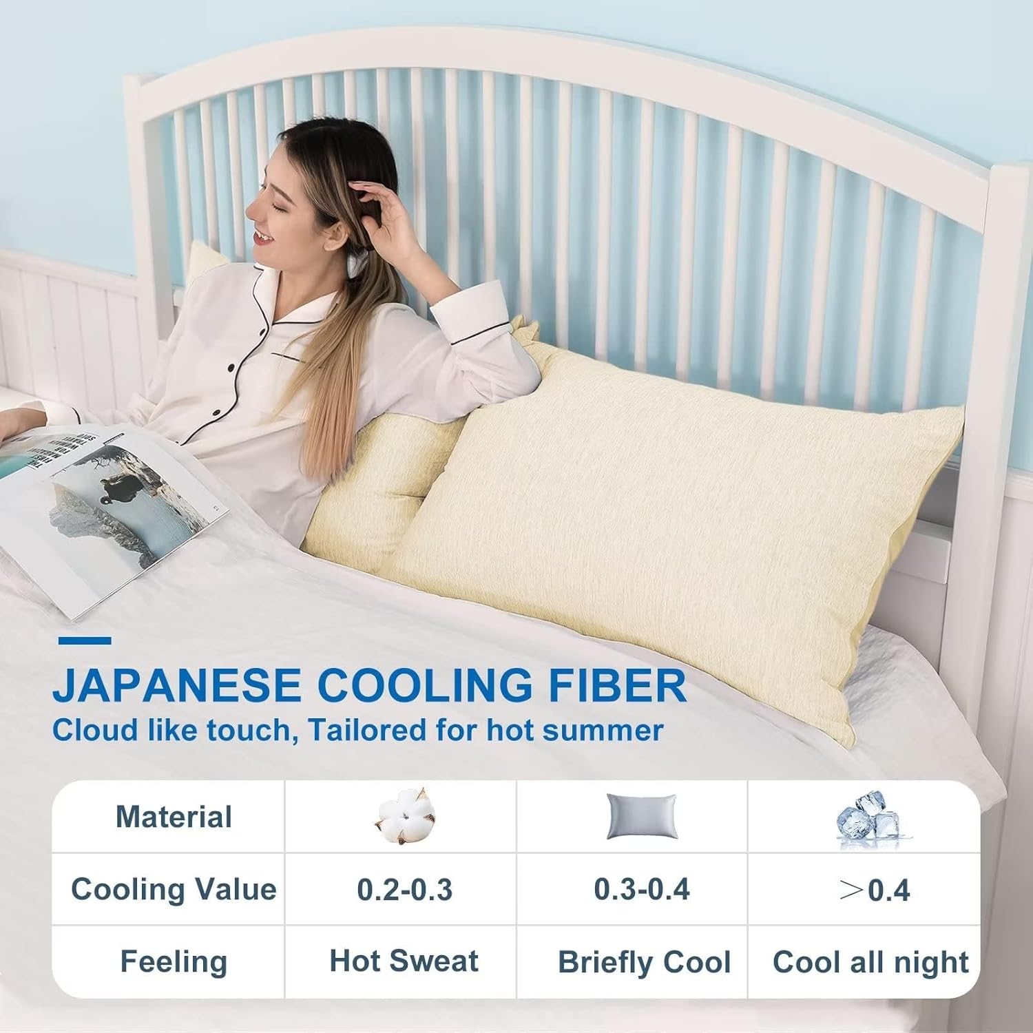 - COOLING TOUCH - HOMFINE cooling pillowcases are made of the latest Japanese Q-Max>0.4, far exceeding other fibers, specially designed for restless nights. This fibers material does a great job of absorbing your body heat and feel cool while touching. They will let you quietly in the irritable night Fall asleep, especially in the hot summer