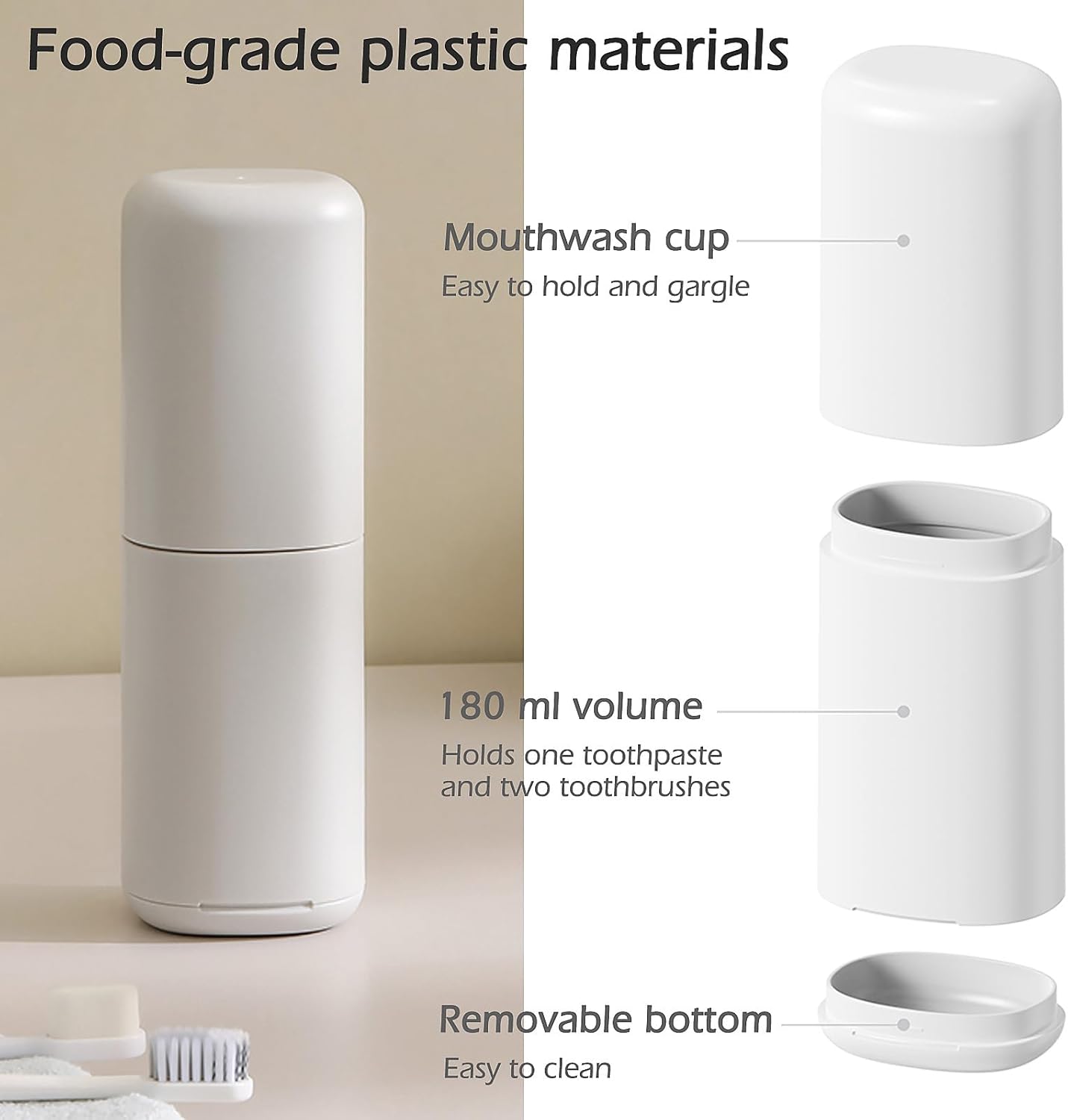 - MULTIFUNCTIONAL AND PRACTICAL: This travel toothbrush holder has a novel design, which consists of a lid, a storage cup and a removable bottom lid in a three-part design. The lid can be used as a water cup, the organizer cup has plenty of capacity, and the bottom lid is removable for easy cleaning. Convenient for carrying your toothbrush, toothpaste and other supplies