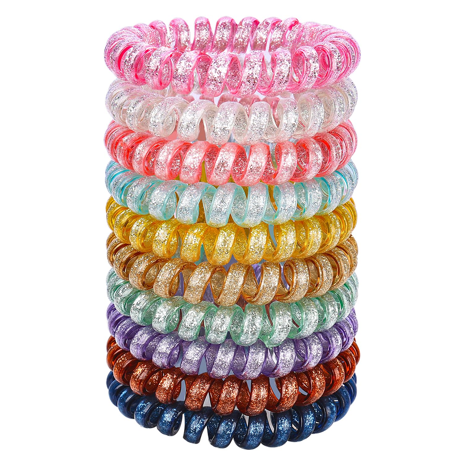 JessLab Spiral Hair Ties for Women, 10-Pack Traceless No-Damage Ponytail Holders, Coils Hair Bands for Girls, Assorted Colors