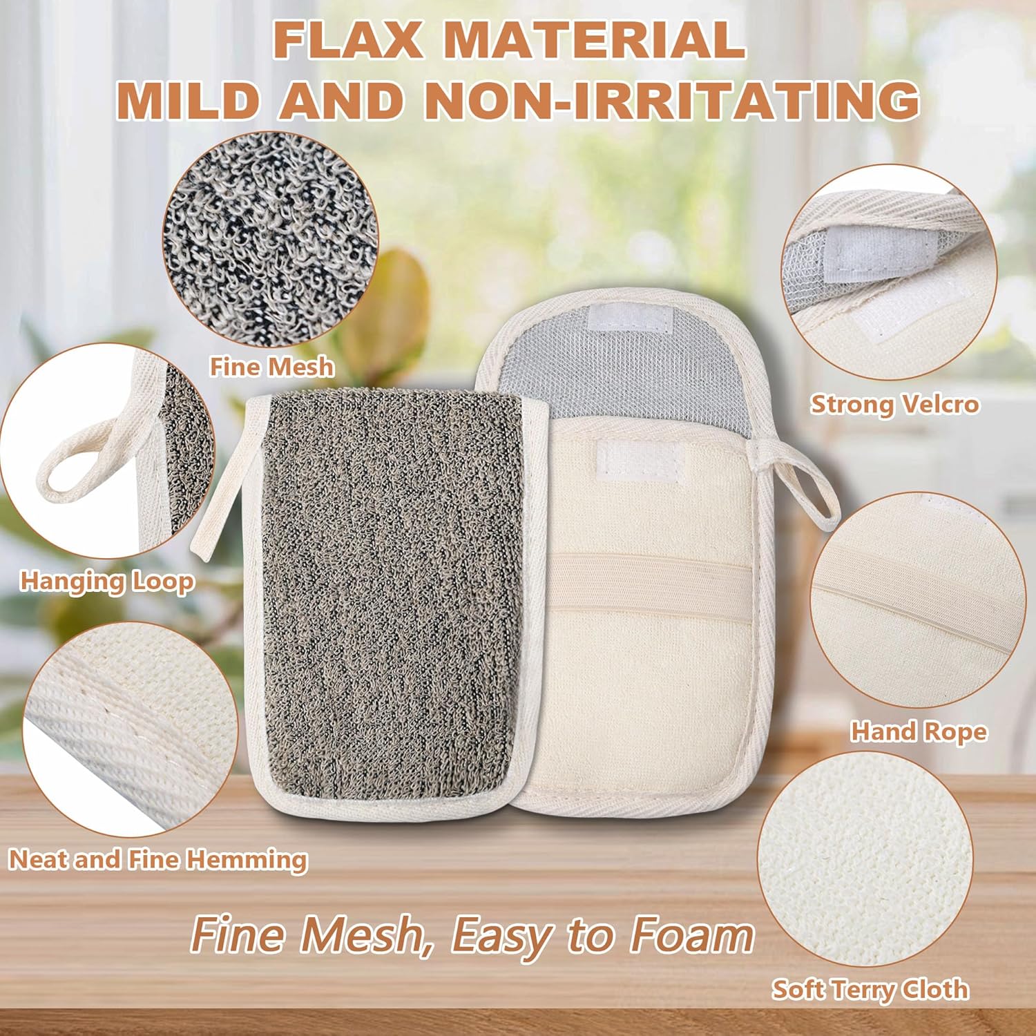 - Bar Soap Scrubber Pouch: Our soap packet body sponge is made of natural flax and towel cotton materials.This bath sponge is mild, non-irritating, friction-resistant.It can easily scrub the body in the shower.