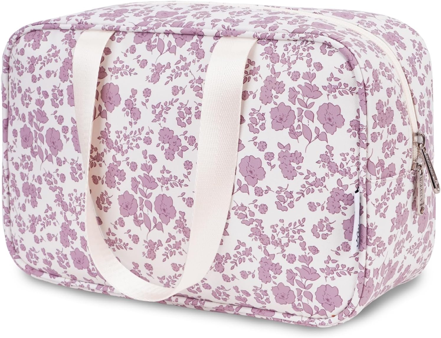 Narwey Large Floral Travel Toiletry Bag Women Toiletries Bag Skincare Bag Makeup Bag Organizer Make up bag Cosmetic Bag Medicine Bag for Girls (Little Dusty Pink Flower, Large)
