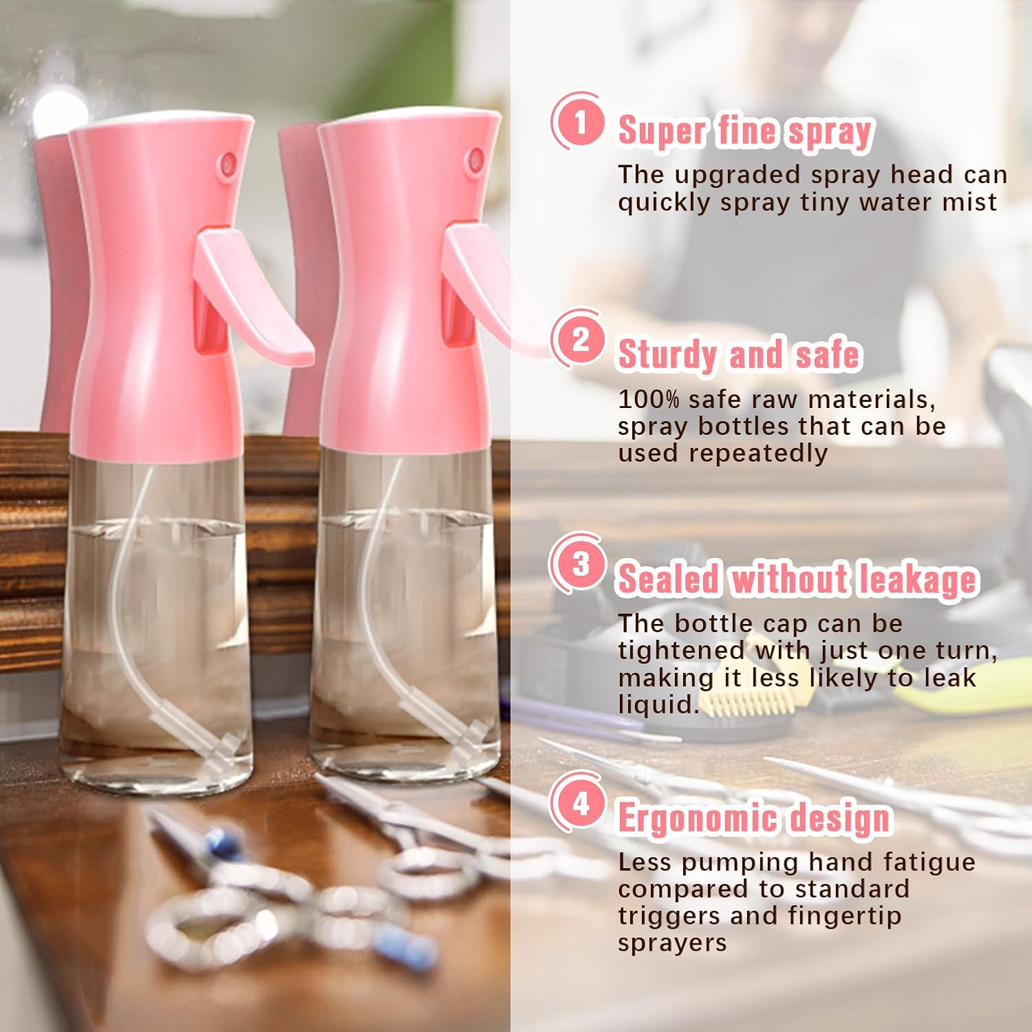 Spray Bottle,Fine Mist Spray for Hair,Ultra-Fine Continuous Spray Bottle for Skincare,Plant Care,Pet Grooming,Cleaning, Refillable Spray Container,Christmas Gift (1Pcs Light Pink 6.8oz)