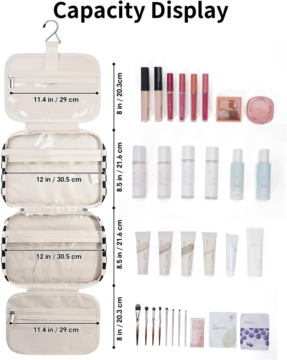 - LARGE VERSION - Fold size 12"x9"x5.5β/30.5x22x13 cm. We launch larger version to meet large-capacity, which you may choose large or medium size based on your needs. It could easily fit full-size travel essentials like shampoo & conditioner, lotion, face wash, toothpaste, toothbrushes, hair brush and daily makeups
