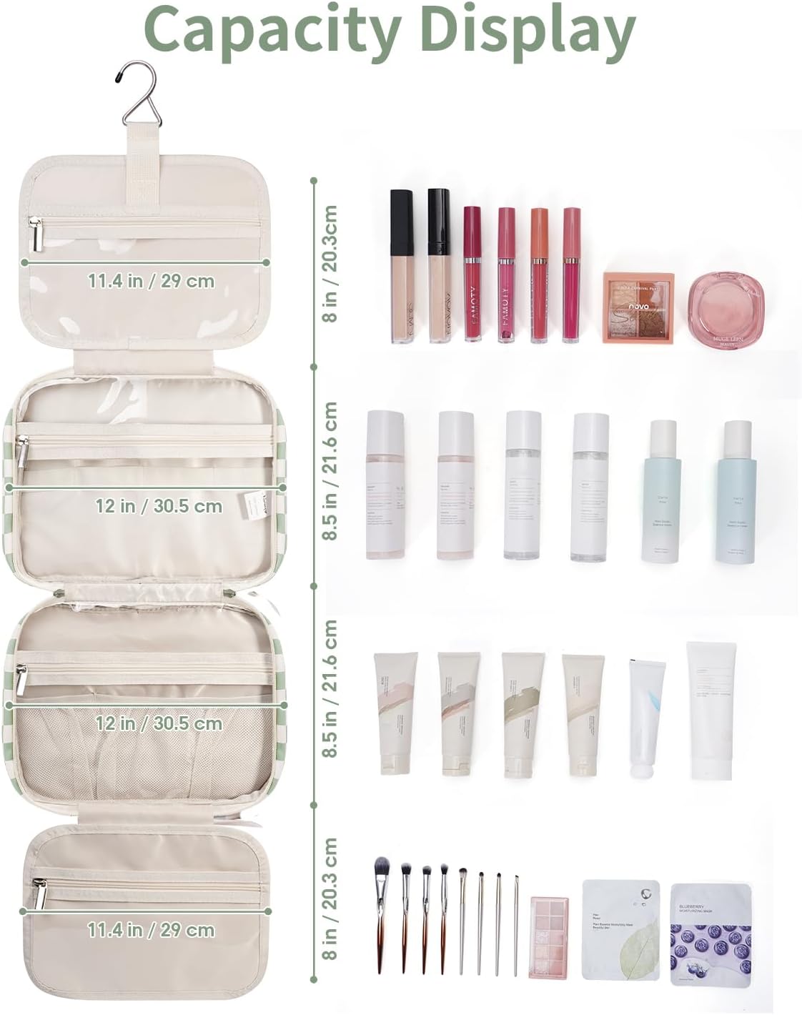 - LARGE VERSION - Fold size 12"x9"x5.5β/30.5x22x13 cm. We launch larger version to meet large-capacity, which you may choose large or medium size based on your needs. It could easily fit full-size travel essentials like shampoo & conditioner, lotion, face wash, toothpaste, toothbrushes, hair brush and daily makeups