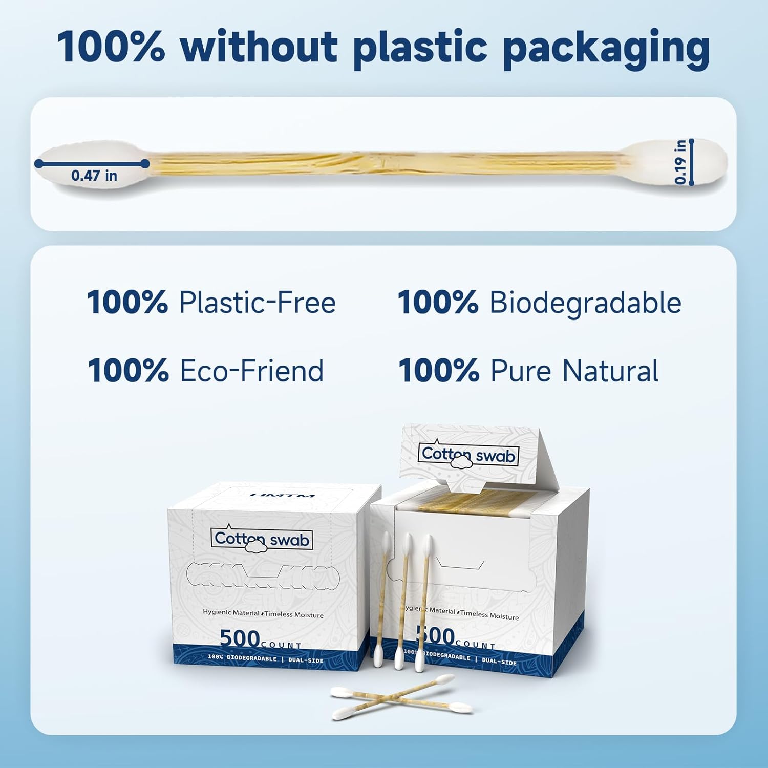 - MATERIAL AND DESIGN :Our cotton buds are made of 100% natural cotton and bamboo, Double rounded tip and precise tip cotton swabs, They are Eco-Friendly and Biodegradable
