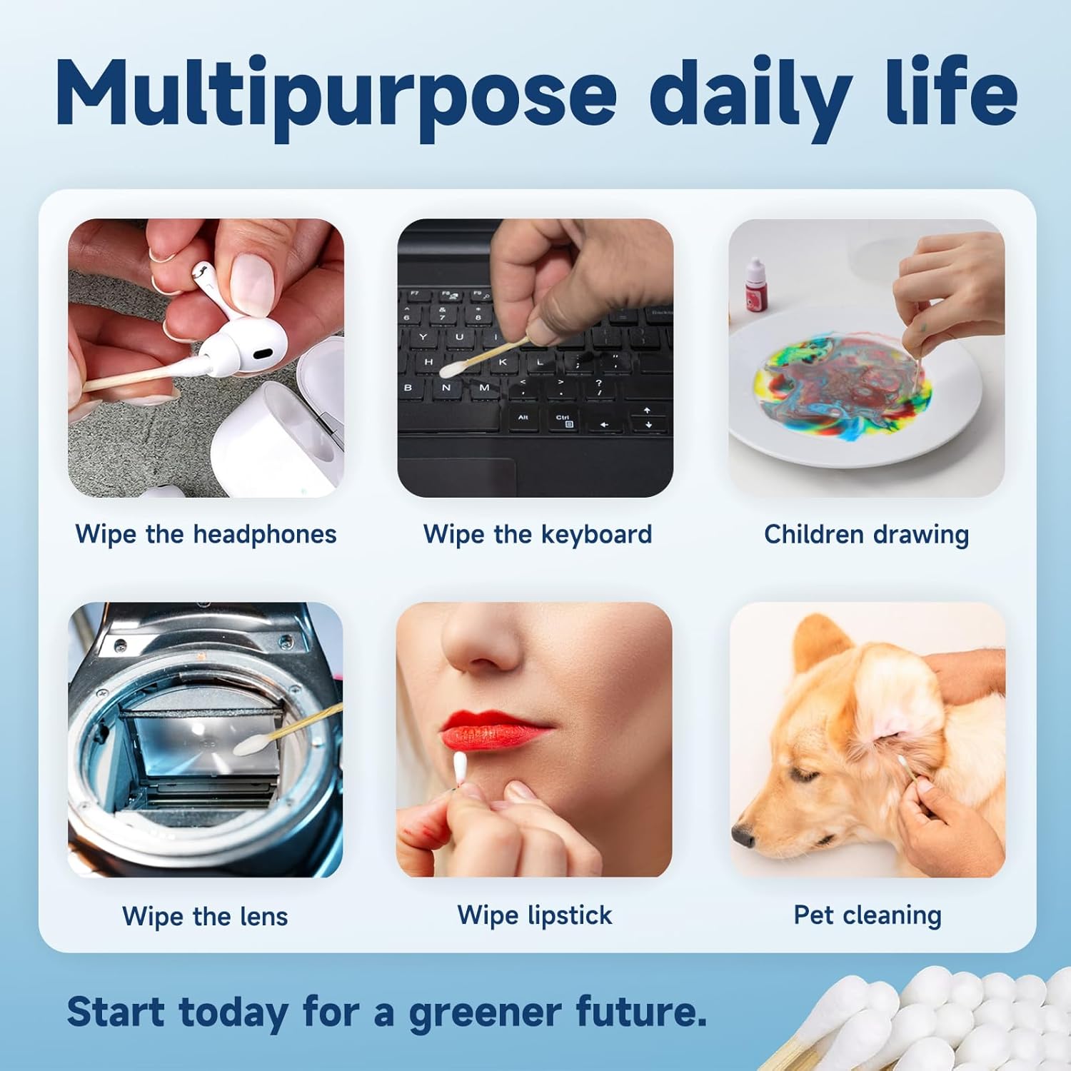 - WIDE MULTIPRUPOSE: Cotton swabs always used to hygiene, beauty care, makeup, applying skin care products. Safe and clean make you take it easy to clean the dirty and dust, household daily cleaning, ear cleaning, Also applied for cleaning machine like VCR heads and lens of camera