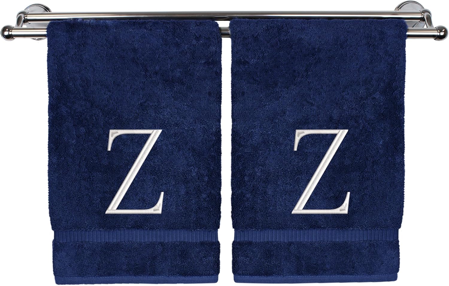 Monogrammed Hand Towel, Personalized Initial Gift, Extra Absorbent 100% Turkish Cotton - Soft Terry Finish - Set of 2 - White Block Initial Z - Embroidered on Navy Blue Towels
