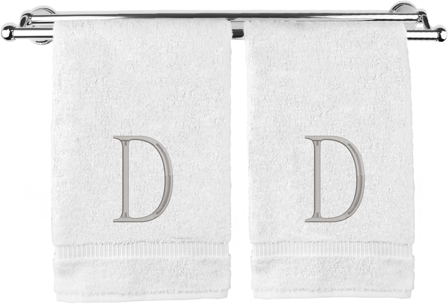 Monogrammed Hand Towel, Personalized Initial Gift, Extra Absorbent 100% Turkish Cotton - Soft Terry Finish - Set of 2 - Silver Block Initial D - Embroidered on White Towels