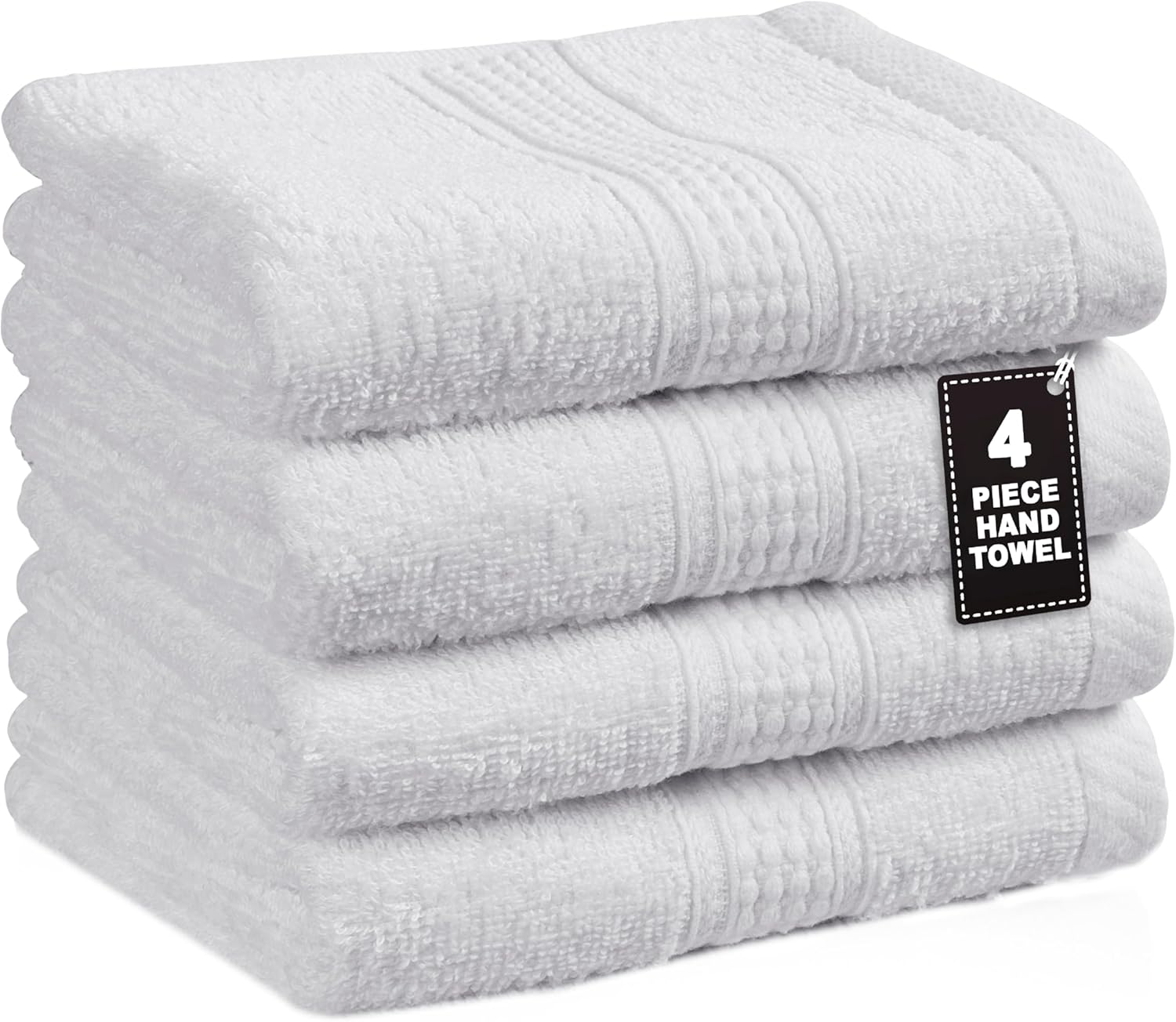 LANE LINEN 4 Pack Hand Towels (16"x28") - Spa & Hotel Quality - 100% Cotton, Ring Spun - Quick Dry, Ultra Soft & Absorbent - Used for Salon, Gym, Bathroom, Beauty - Pre Shrunk - White Hand Towels Set