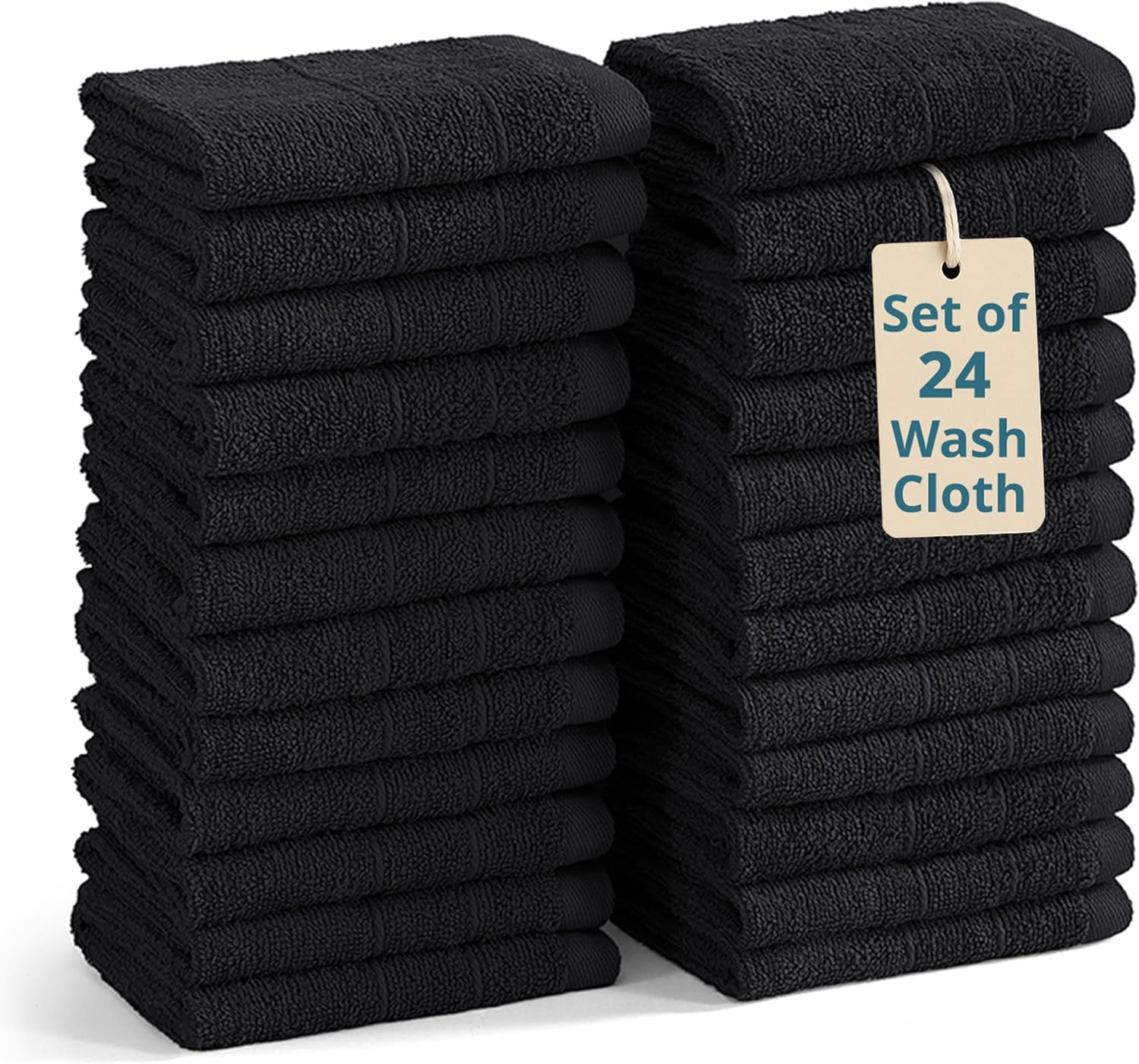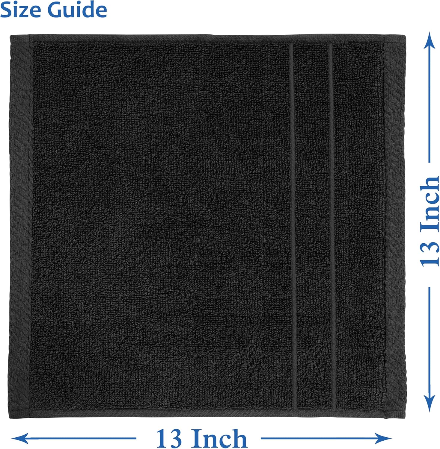 Casa Platino 100% Cotton Washcloths 24 Pack - Spa & Salon Quality Face Cloths - Ring Spun, Soft & Absorbent Wash Cloths for Body, Beauty, Home, Gym - Fingertip Towels Set- 13"x13", Black Towels Set