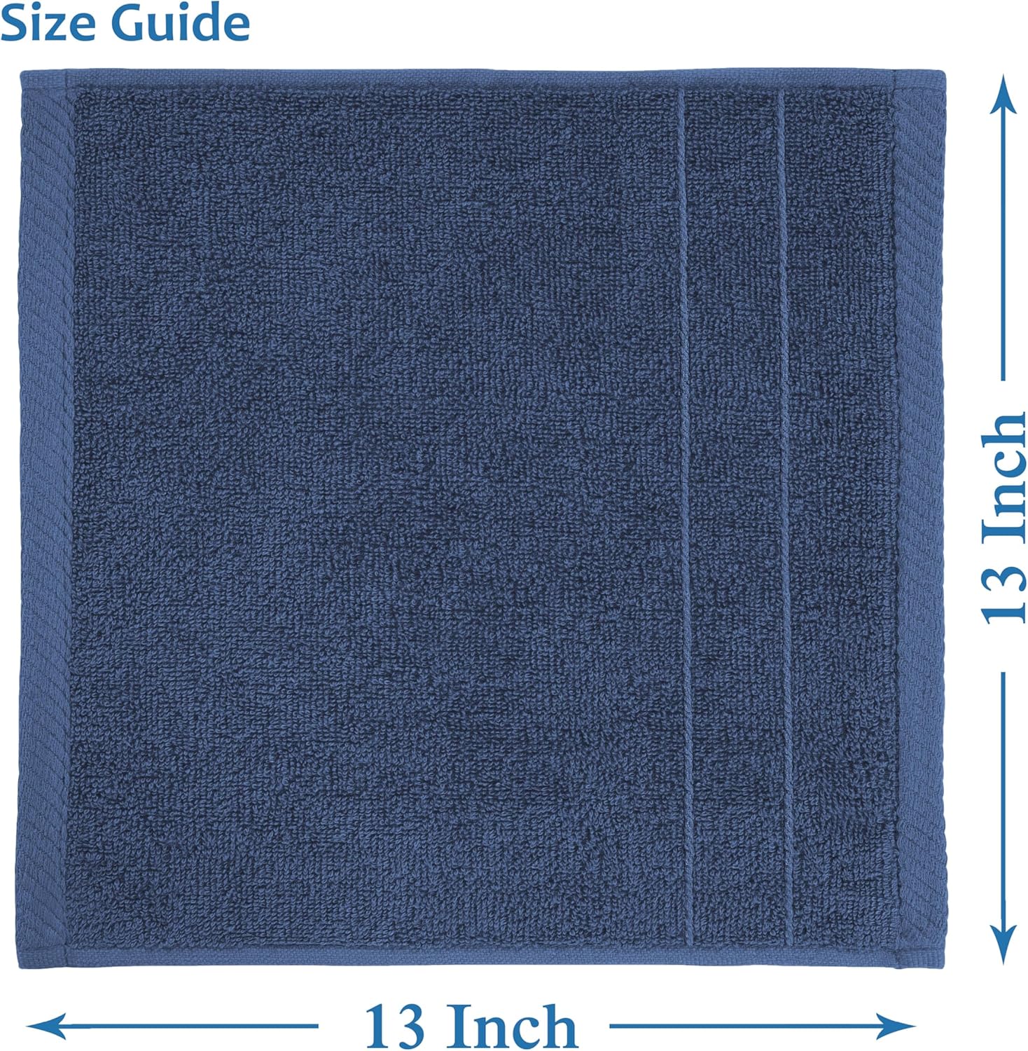 Casa Platino Washcloths Pack of 6 - Spa & Salon Quality - 100% Ring Spun Cotton Face Cloths - Soft & Ultra Absorbent Wash Cloth Set for Body, Beauty, Home, Gym - Fingertip Towels - 13"x13", Navy Blue
