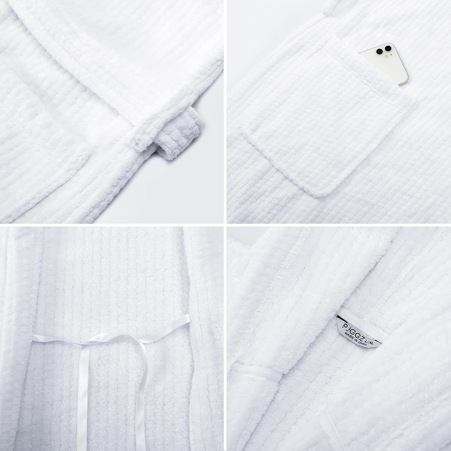 - HOODED BATHROBES WITH POCKETS: The hood is perfect for keeping the head warm during the chilly mornings. Slip front pockets are perfect for storing all your stuff with convenience, or just for keeping your hands warm in this bathrobe