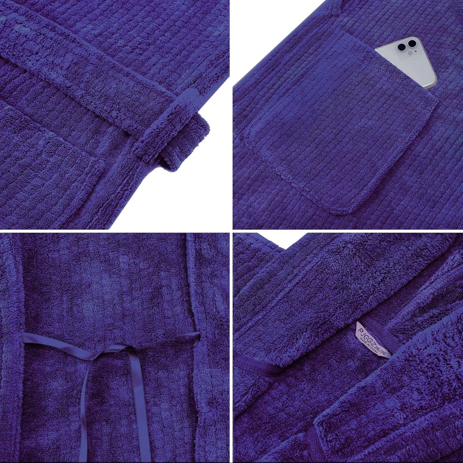 - HOODED BATHROBES WITH POCKETS: The hood is perfect for keeping the head warm during the chilly mornings. Slip front pockets are perfect for storing all your stuff with convenience, or just for keeping your hands warm in this bathrobe