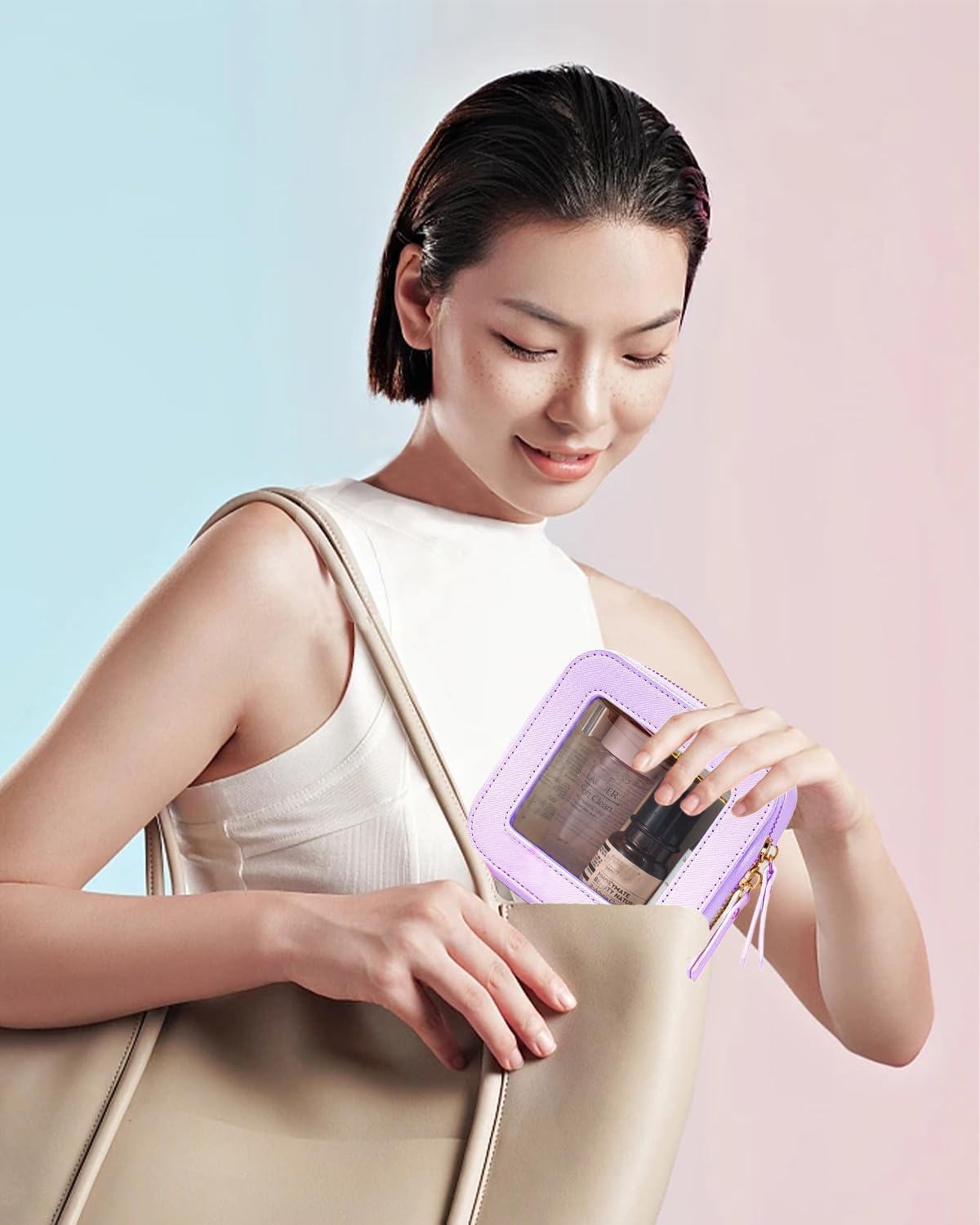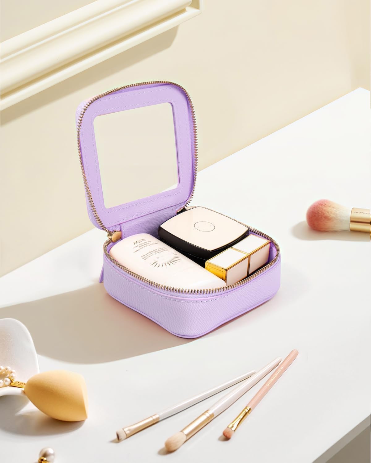 - Small and Clear Design: You will get 1PCS small minimalist boxy shape travel makeup bag which is sleek and minimalistic look for your makeup accessories collection. And is designed with a transparent PVC window,all items are clear at a glance, and you can quickly choose the cosmetics you need.Portable and lightweight Slip it into your purse, backpack, everyday tote or travelling bag for easy access to your must-have items. Size:5.1'' x 4.8''x 2''