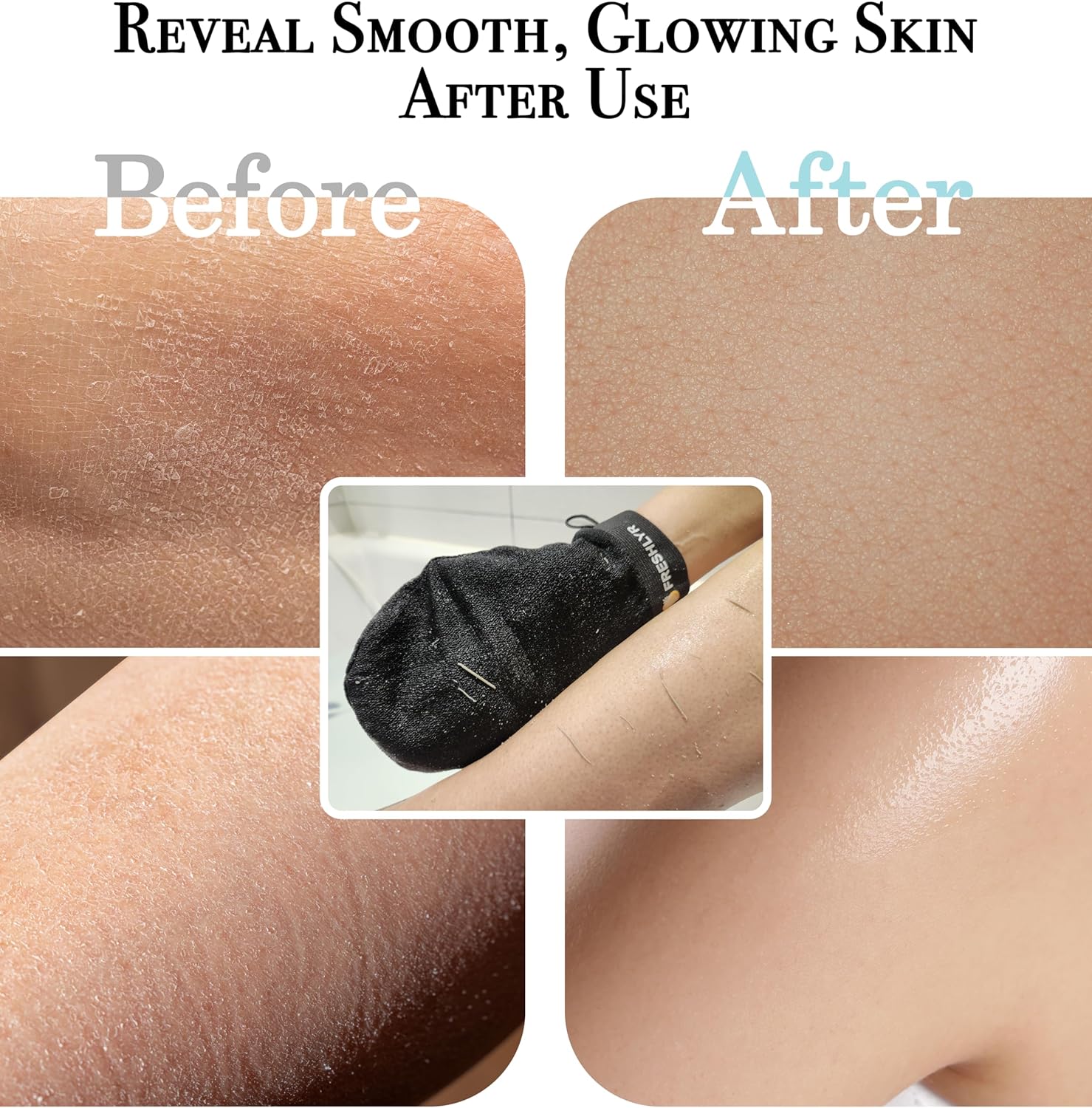 - Achieve Smoother, Healthier Skin with FRESHLYR - Our Premium Exfoliating Glove offers a Korean spa-inspired exfoliation experience that reveals soft, glowing skin. For those looking to improve skin texture and remove dead skin, using our Deep Exfoliating Gloves 2–4 times a month during your shower will help you maintain smoother, more radiant skin while effectively removing built-up impurities.