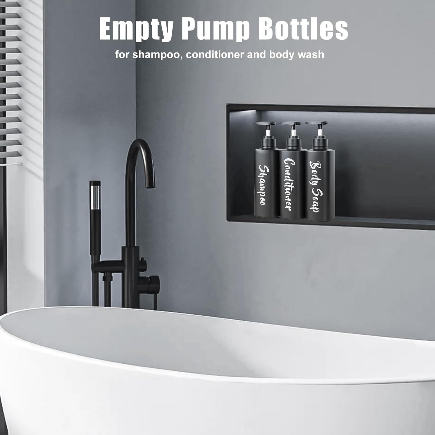 16.9oz Bathroom Soap Dispenser Set, Refillable Shampoo and Conditioner Bottles, Empty Bottles with Pump for Shampoo, Conditioner, or Body Wash, Matte Black Shower Dispensers, Set of 3