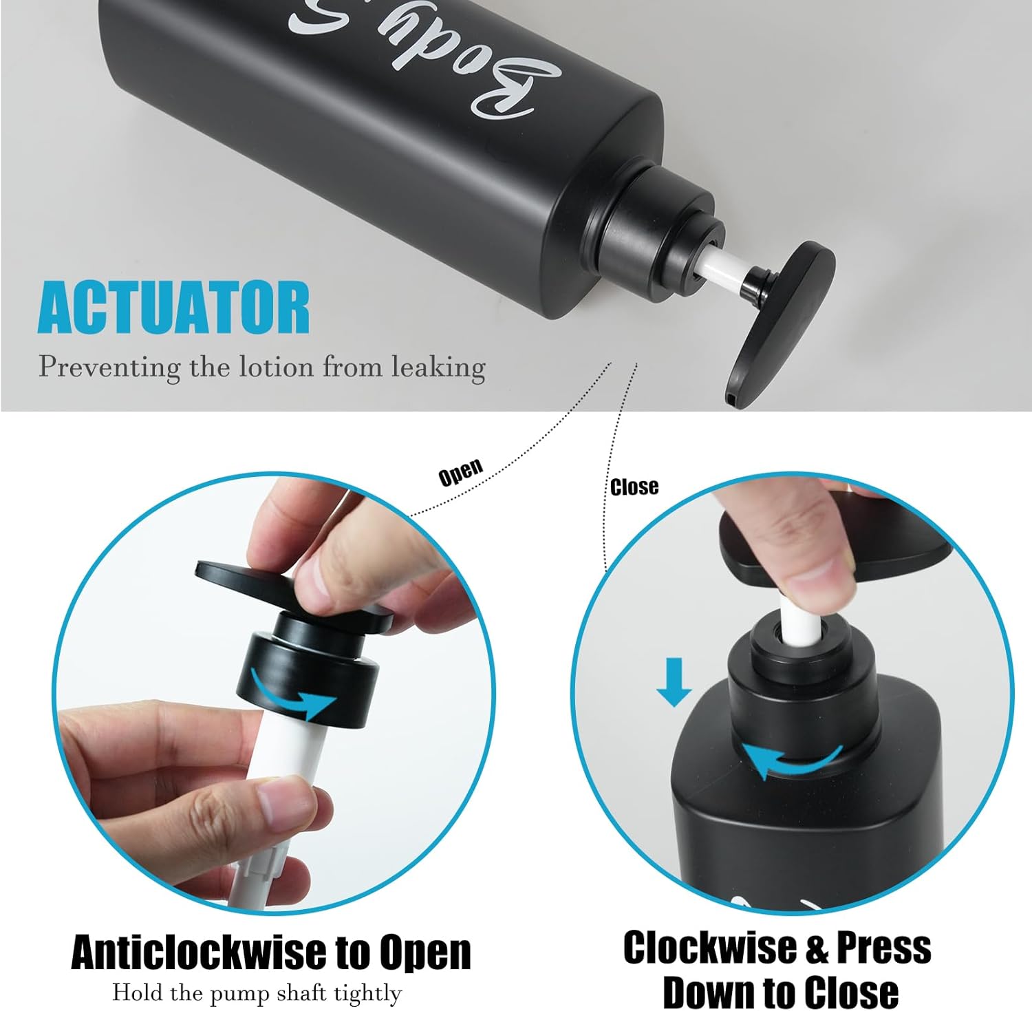 - Permanent Waterproof Stickers: Our shampoo and conditioner dispensers are printed with strong and fancy labels on a high quality silk printer for durability. Each bathroom soap dispenser set is labeled with the words “shampoo”, “conditioner”, and “body soap” to help you easily identify each pump bottle dispenser.