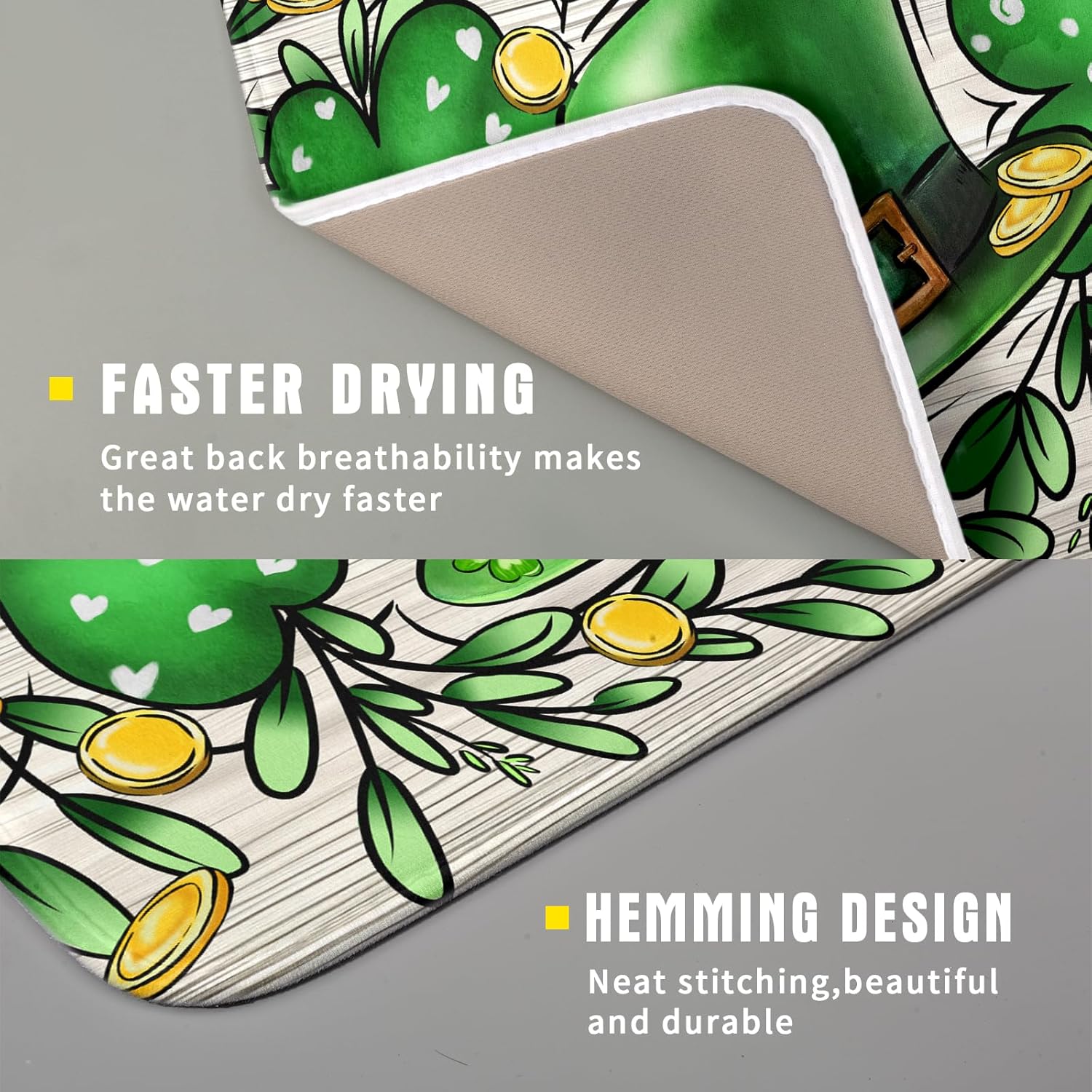 St Patrick's Day Shamrock Dish Drying Mat 16x18 inch Eucalyptus Leaves Dishes Pad Dish Drainer Mats Absorbent Fast Dry Kitchen Accessories
